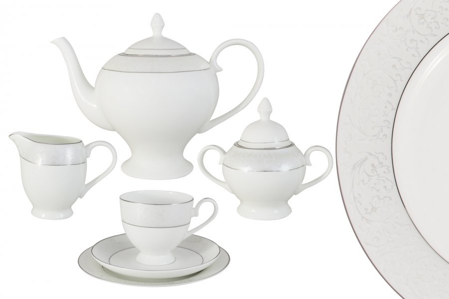 Сервиз чайный, 6 перс, 21 пр, фарфор F, белый, с серебристым кантом, Melisenta