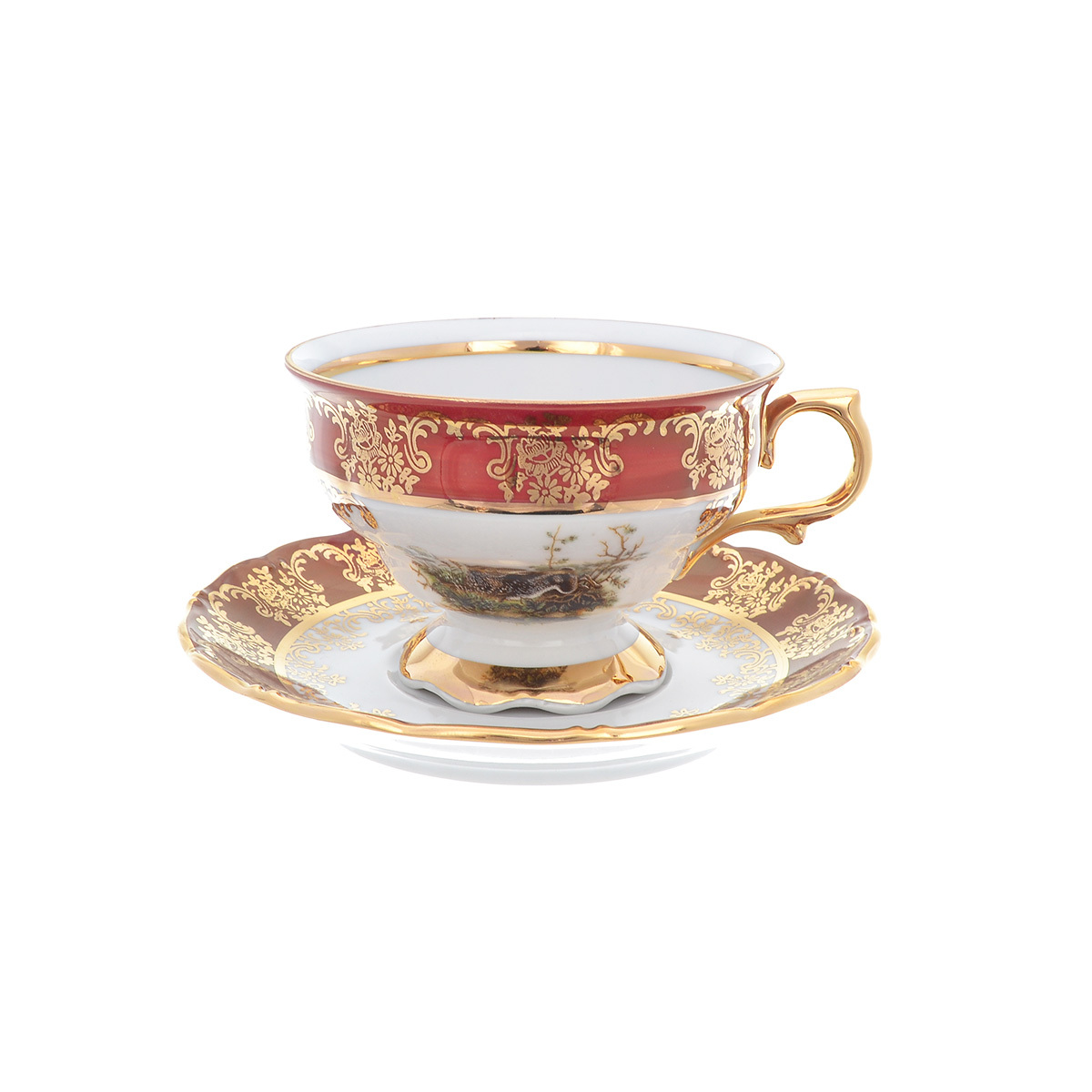 Чайный сервиз на 6 персон Queen's Crown Aristokrat Охота красная 15 предметов