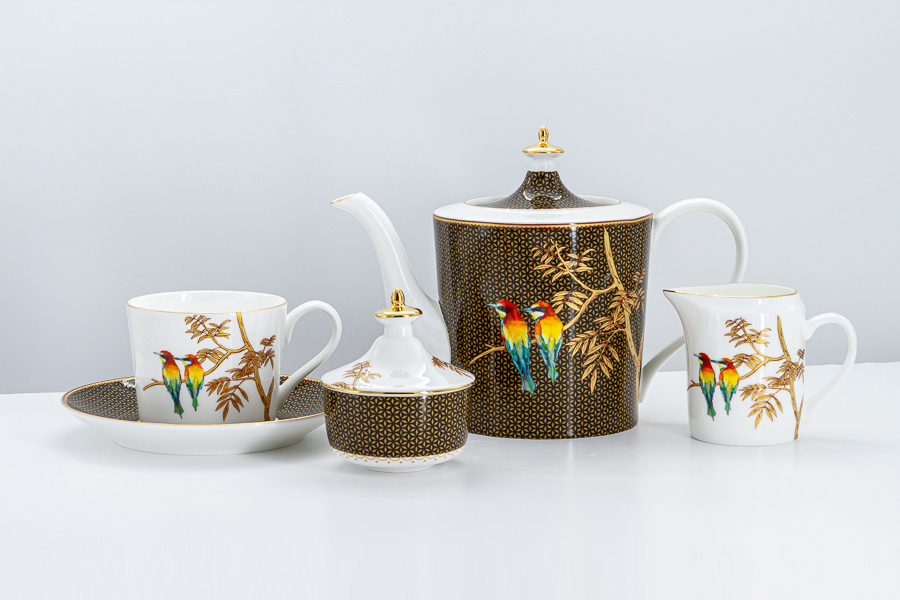 Сервиз чайный, 6 перс, 15 пр, фарфор F, черно-желтый, Птицы на ветке, Bird talk