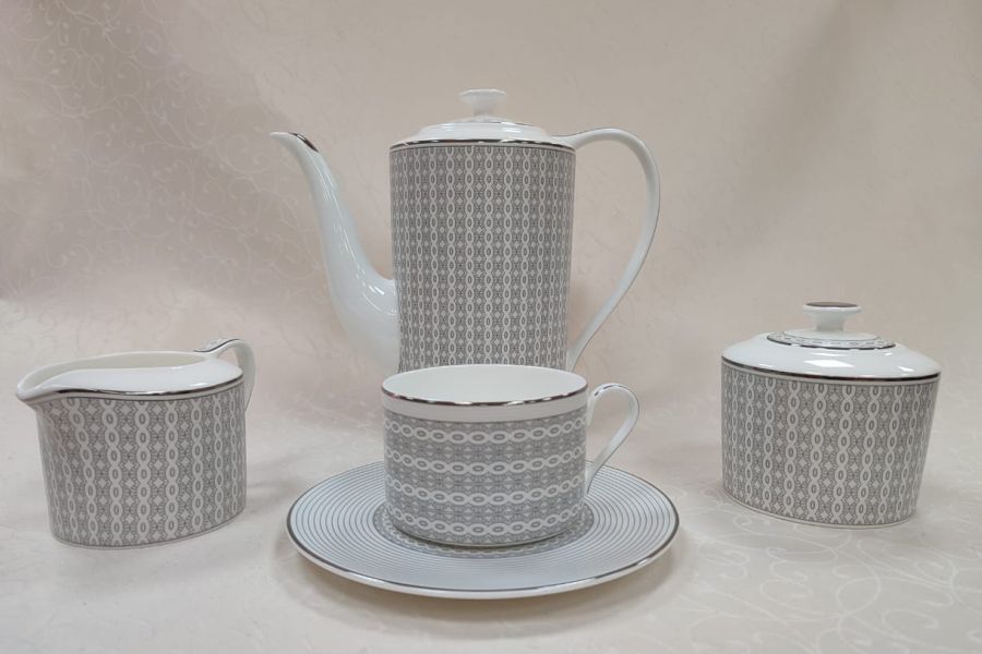 Сервиз чайный, 6 перс, 21 пр, фарфор F, серо-белый, с серебристым кантом, Цепочки, Silver