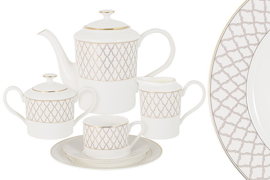 Сервиз чайный, 6 перс, 21 пр, фарфор F, белый, с золотистым кантом, Ромбы, Windsor