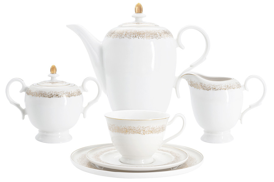 Сервиз чайный, 6 перс, 21 пр, фарфор F, белый, с золотистым кантом, Вуаль, Golden dream