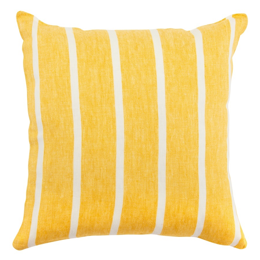 "Чехол на декоративную подушку в полоску горчичного цвета из коллекции Essential добавит настроения в ваш интерьер. Он выполнен изо льна, гипоаллергенного материала, который прост в уходе и долгое время сохраняет презентабельный внешний вид. Яркий практичный чехол горчичного оттенка впишется в любой интерьер и будет хорошо сочетаться с остальными подушками. Модель застегивается на потайную молнию.