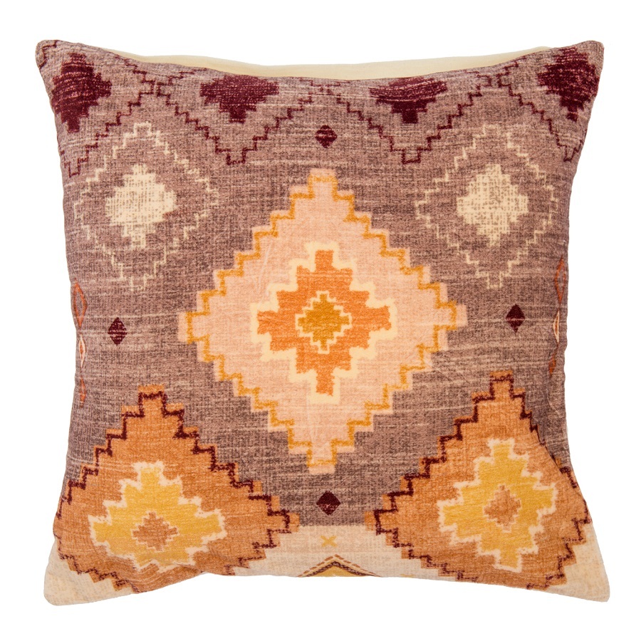 Чехол на подушку можно сочетать в интерьере с ковром с таким же орнаментом.