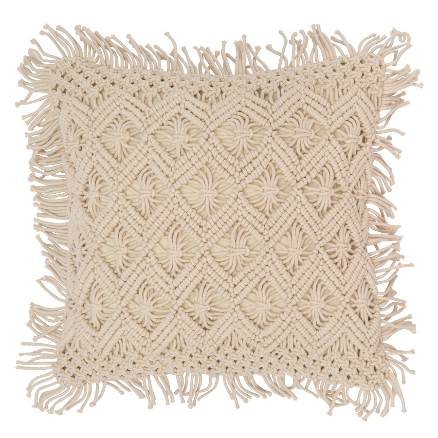 "Чехол на подушку с макраме и бахромой светло-бежевого оттенка из коллекции Ethnic гармонично дополнит различные стилевые решения и привнесет в оформление интерьера колоритные нотки этники.