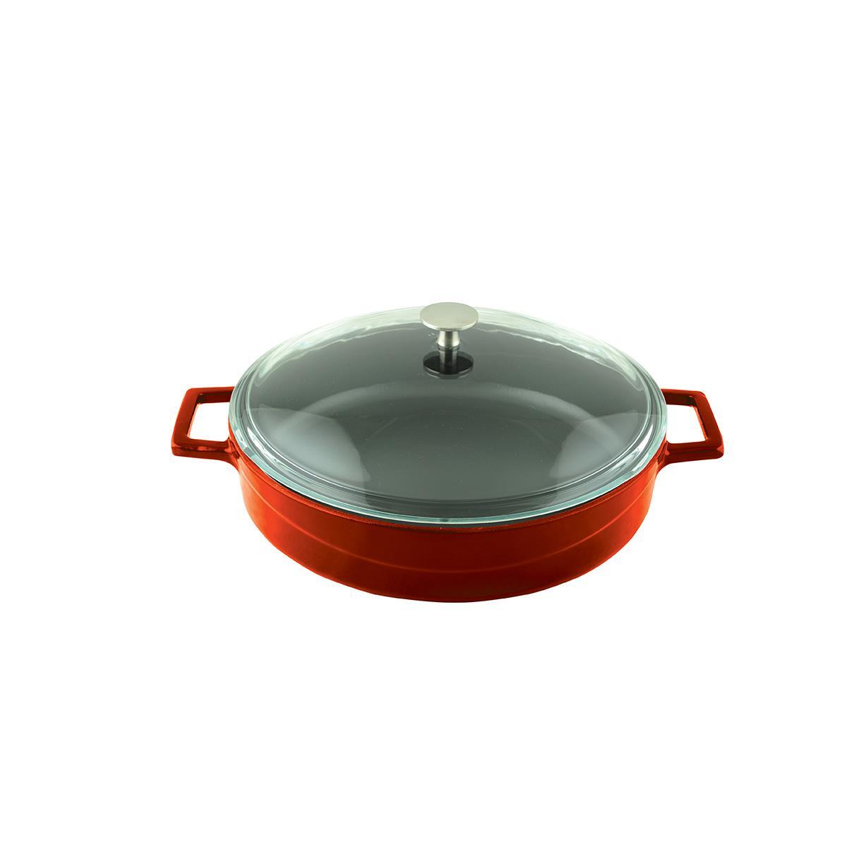 Чугунная эмалированная кастрюля со стеклянной крышкой 2,47 л, 24 см, оранжевый