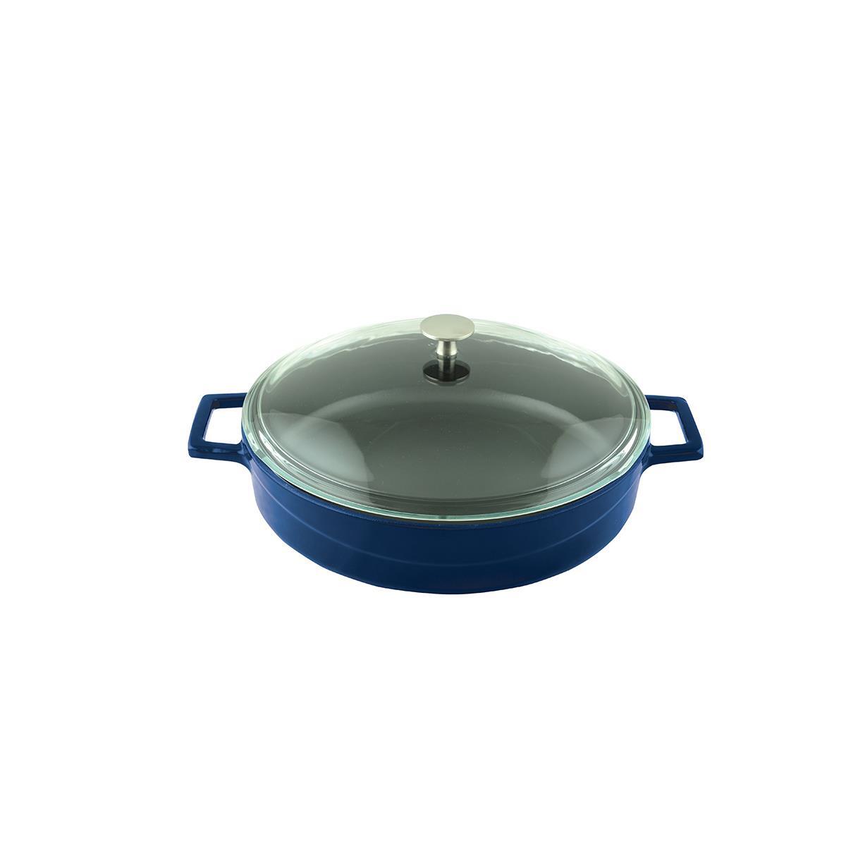Чугунная эмалированная кастрюля со стеклянной крышкой 2,47 л, 24 см, синий
