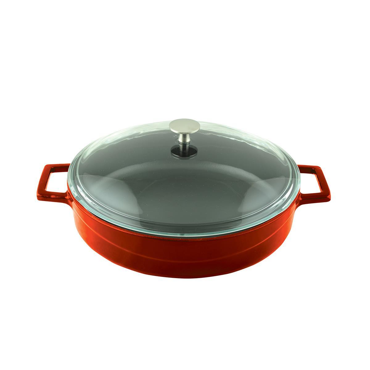 Чугунная эмалированная кастрюля со стеклянной крышкой 3,51 л, 28 см, оранжевый