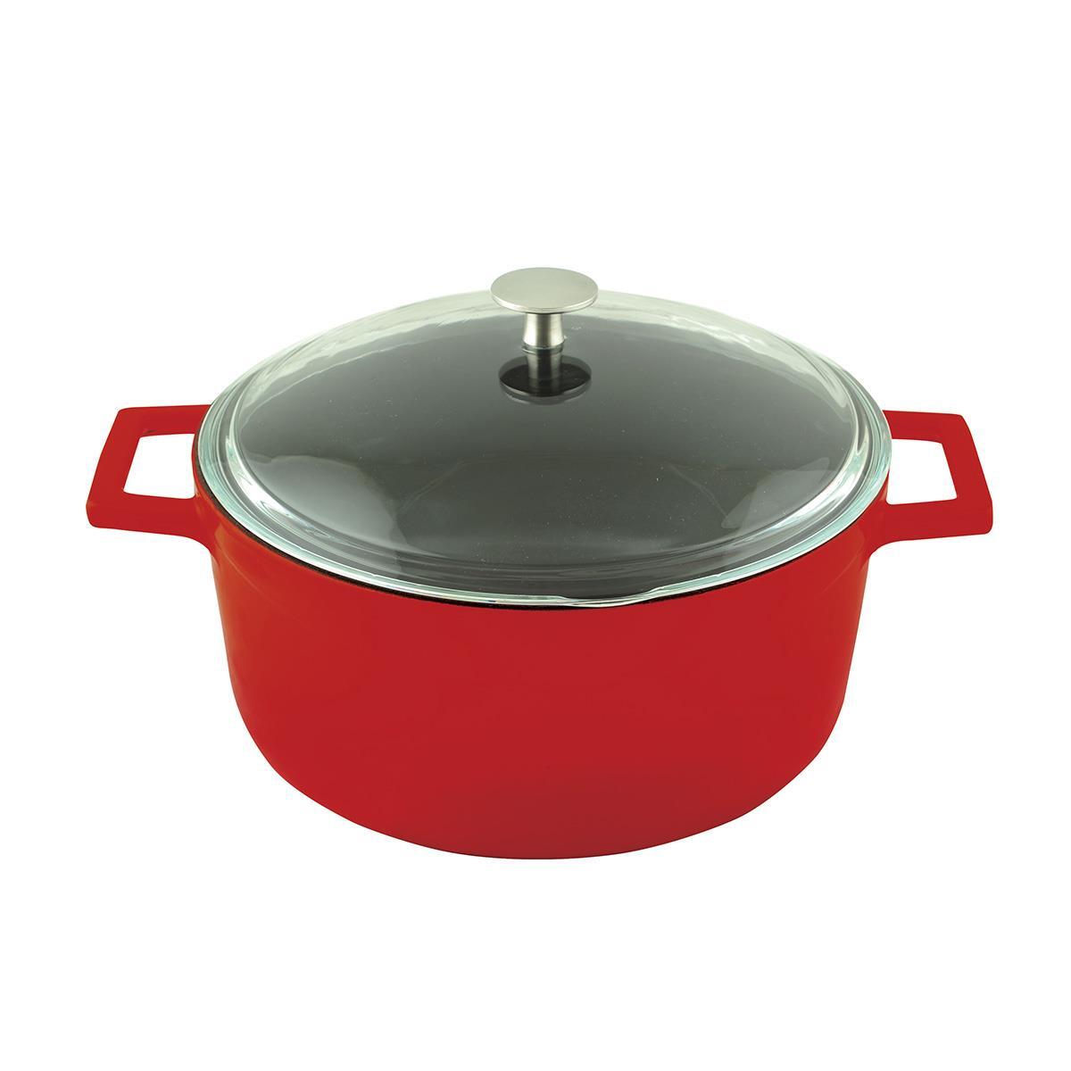 Чугунная эмалированная кастрюля со стеклянной крышкой 6,71 л, 28 см, красный