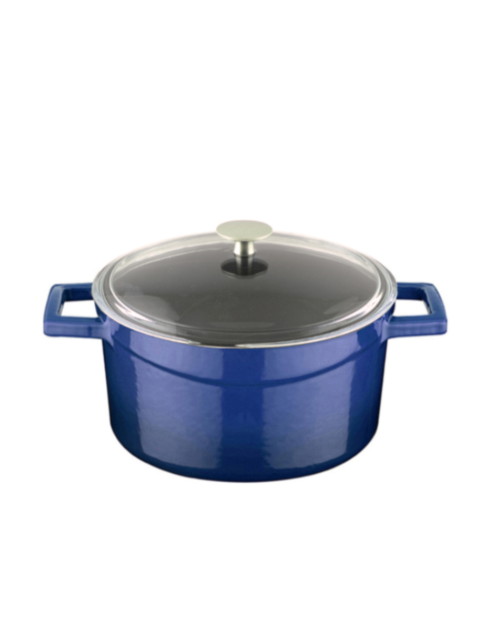 Чугунная эмалированная кастрюля со стеклянной крышкой 6,71 л, 28 см, синий
