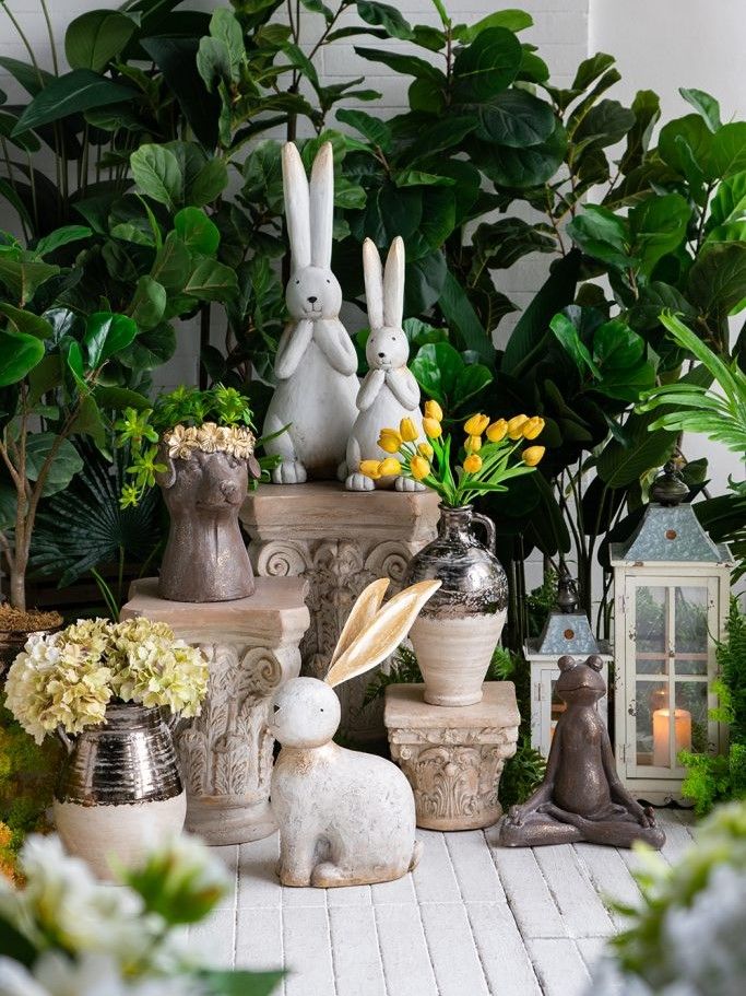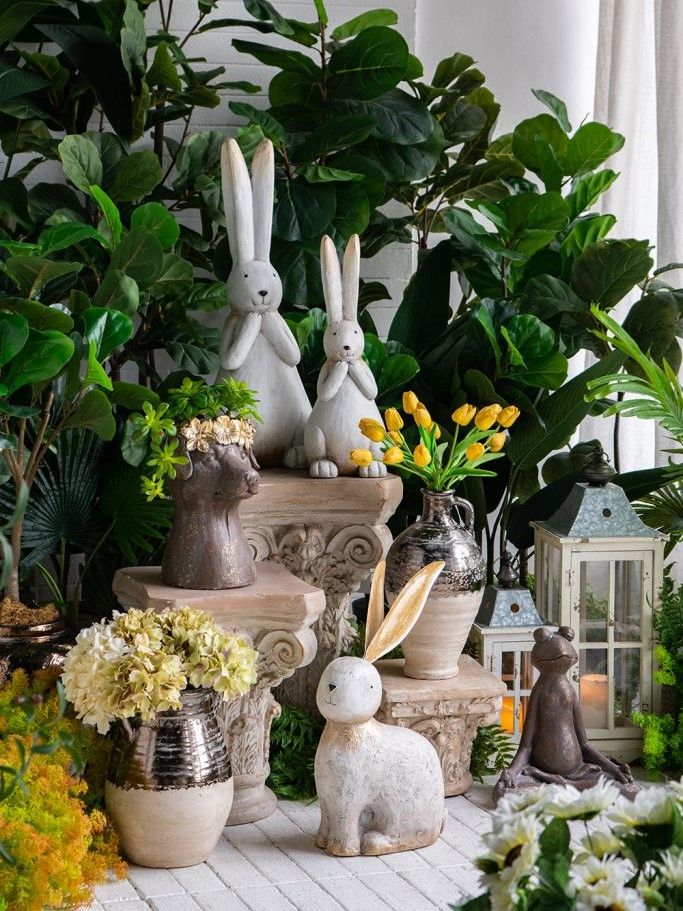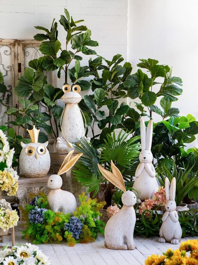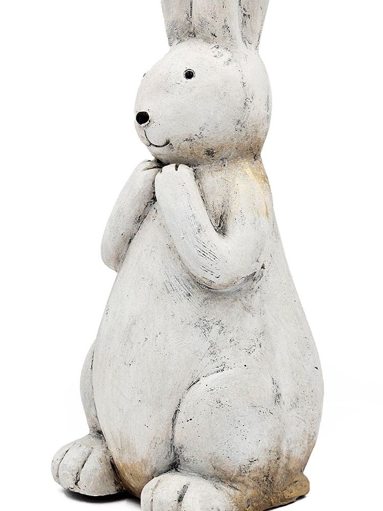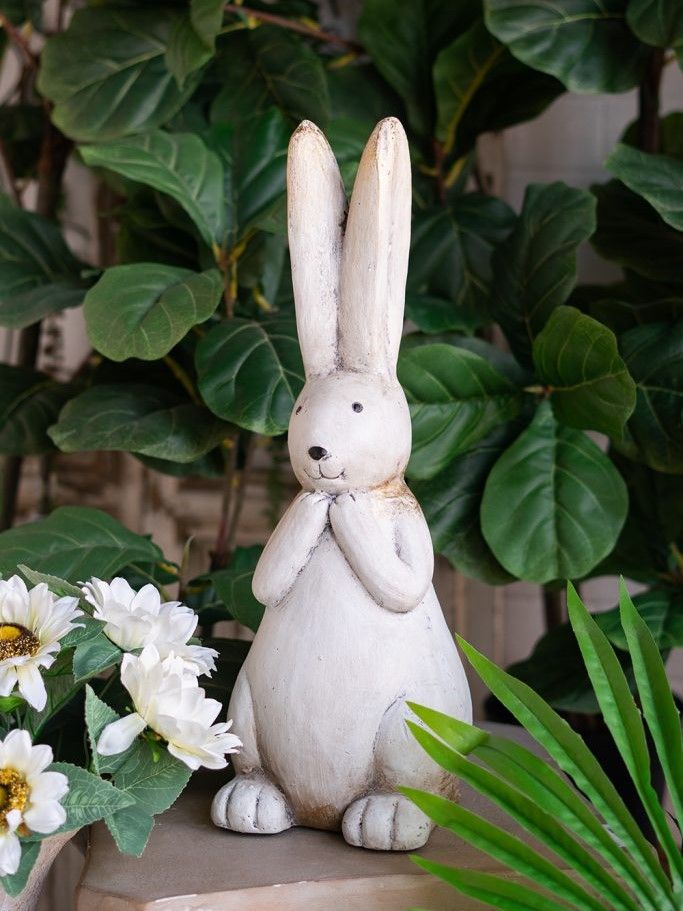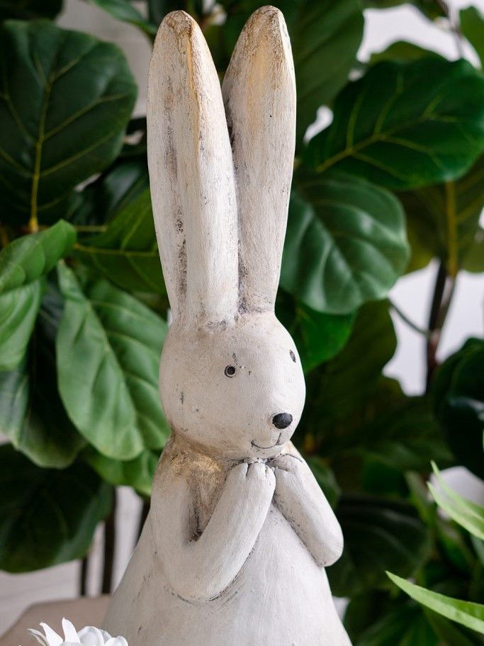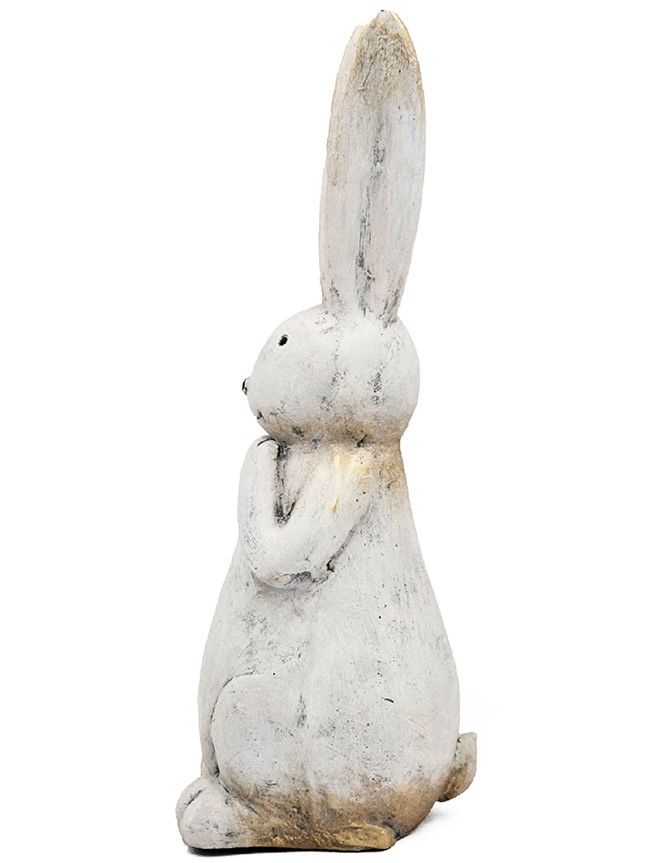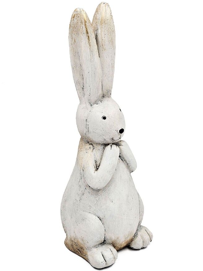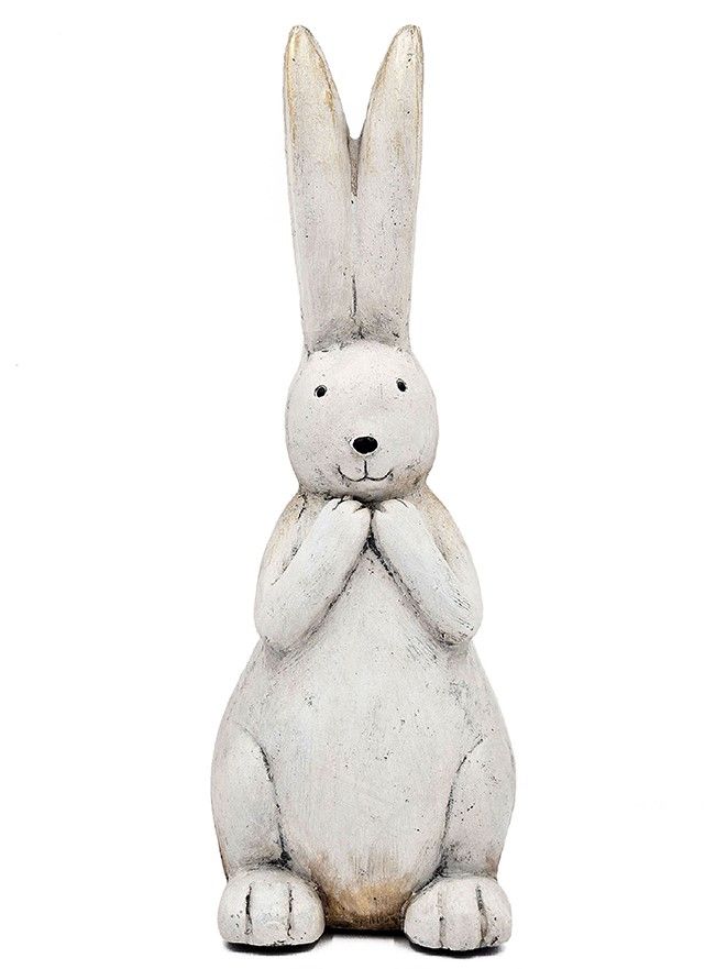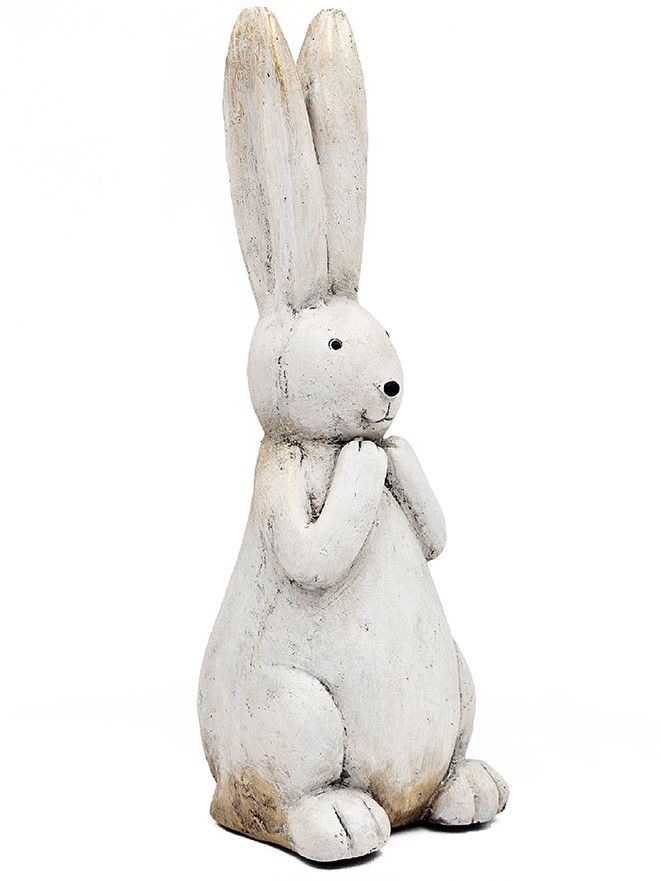 Восхитительный напольный декор в виде игривого зайчика отличается простым округлым силуэтом, текстурированным белым оттенком и длинными ушами. Дополненный восхитительными чертами мордашки, он украсит любую комнату в вашем доме, если поставить изделие на пол или стол, каминную или книжную полку.