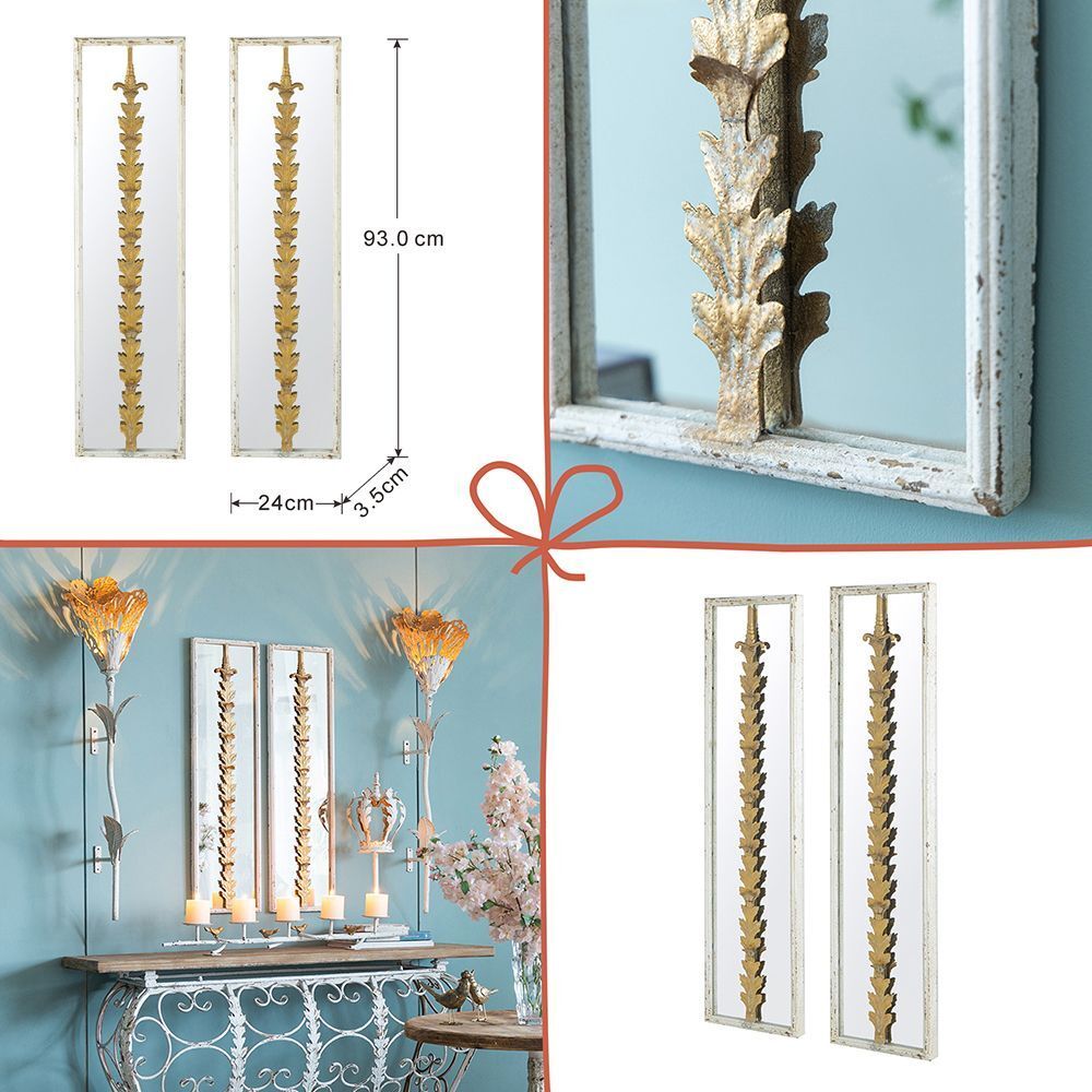 Набор декоративных стеновых панелей с зеркальной поверхностью, вдохновленный дизайном винтажного стиля, украсит стиль вашего дома особой элегантностью. Белая отделка с эффектом под старину, в сочетании с текстурным изображением золотистого цвета в центральной части, создадут вневременной акцент ушедших эпох. Поэкспериментируйте с расстоянием между двух панелей, чтобы найти расположение наиболее подходящее для визуального увеличения пространства в вашем интерьере.