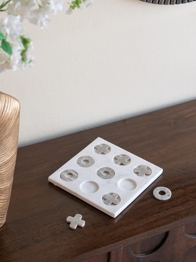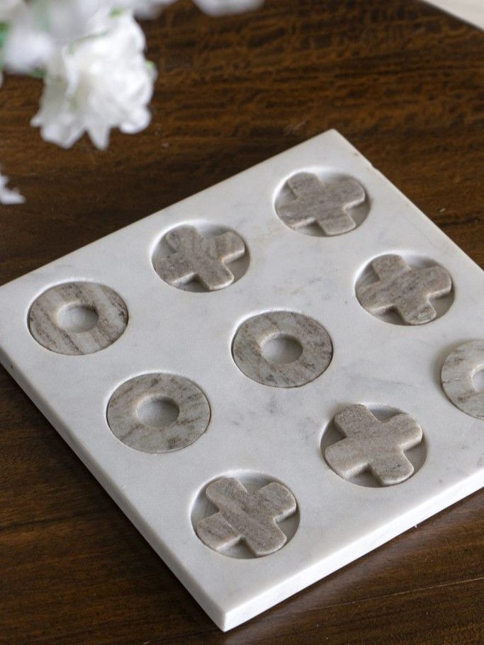Декоративный настольный набор для игры в крестики-нолики идеально подходит для того, чтобы интересно провести время и сыграть всей семьей. Доска и фигуры изготовлены из натурального высококачественного мрамора в оттенках белого и серого. Простая квадратная форма и сдержанные тона позволяют набору дополнять переходные, современные и индустриальные стили, благодаря чему декор-игра органично впишется в любой интерьер.