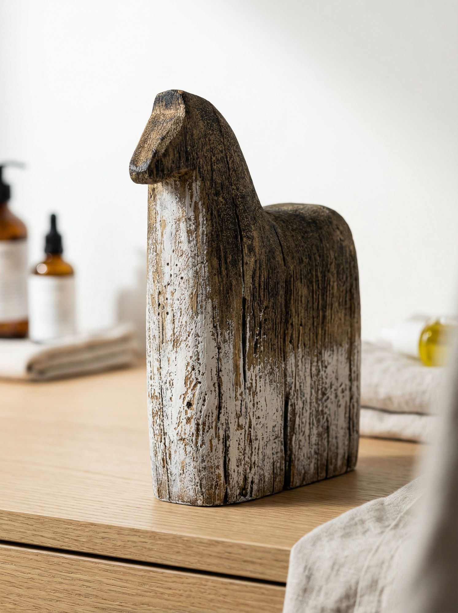 Декоративная фигурка лошади, вдохновленная искусством древних племен, отличается абстрактным дизайном, выточенным образом из натурального дерева павлонии со штрихами винтажного стиля. Независимо от того, будет ли фигурка стоять отдельно или в составе винтажной композиции, она украсит любую поверхность стола, каминную полку, сервант или стеллаж. Силуэт и выразительная форма позволяют изделию гармонично вписываться в переходный, современный, ваби-саби и эклектичный стили, благодаря чему изделие легко впишется в интерьер. Создайте свой дизайн интерьера совместно с изделиями из этой коллекции.