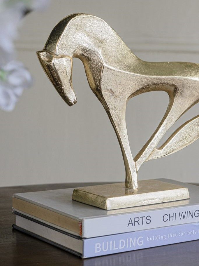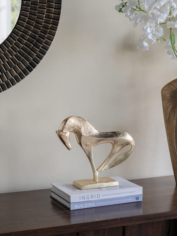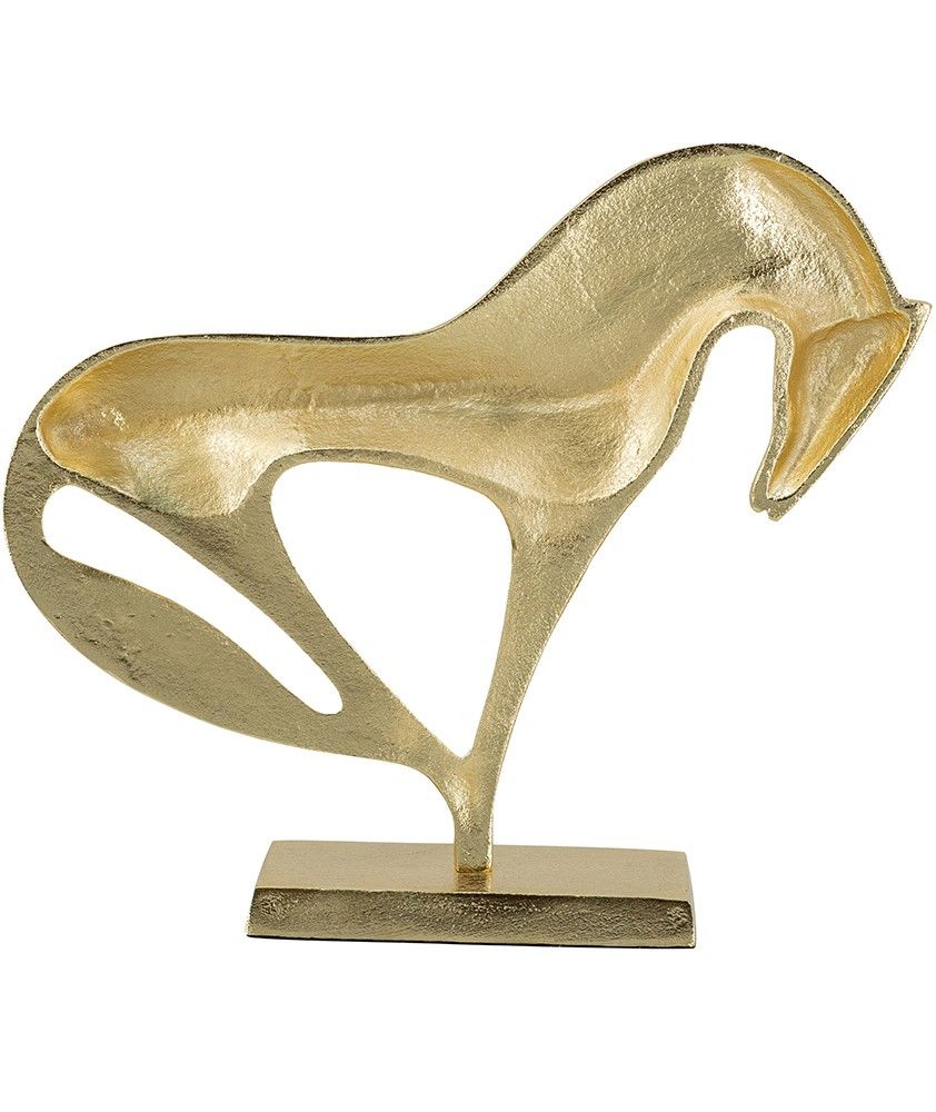Скульптурный силуэт лошади, превращающий могущественную красоту природы в абстрактное произведение искусства, отличается изящной формой, богатой золотистой отделкой и прочным основанием. Изделие идеально подходит для любой поверхности стола или книжной полки, а также станет необходимым декором для любителей конного спорта. Яркий образ и теплая цветовая гамма позволяют этому изделию сочетаться с современными, арт-деко, индустриальными и переходными стилями.