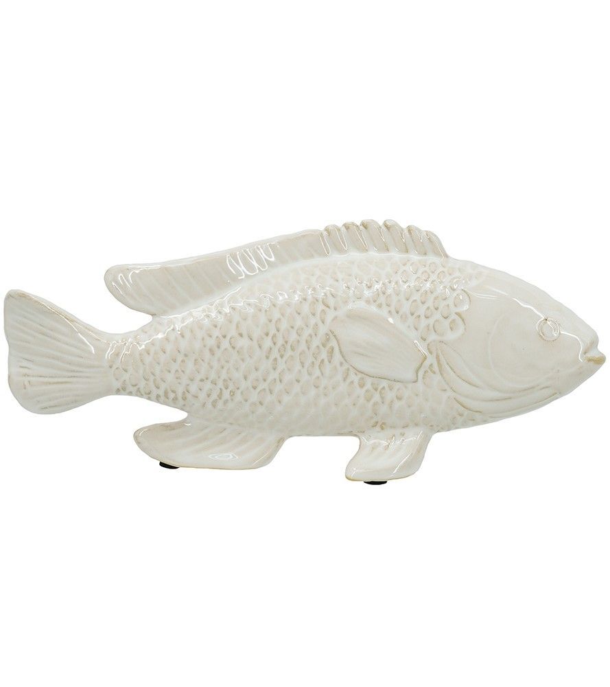Непринужденная красота природы отражается в этой скульптуре в виде рыбы, с нежной кремовой отделкой и реалистичным дизайном. Независимо от того, стоит ли это изделие отдельно или в сочетании с другими предметами из этой коллекции, декор привлечет внимание из любой комнаты вашего дома. Элегантный нейтральный окрас позволяет этой рыбе дополнять прибрежные, современные и эклектичные интерьеры, органично вписываясь в любую обстановку.