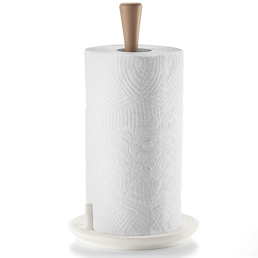 "Держатель для бумажных полотенец Tierra выполнен из переработанного пластика с элементами из дерева. Материал имеет антибактериальные свойства, создавая на своей поверхности защитный барьер, препятствующий размножению бактерий. Держатель оснащен регулируемым фиксатором листа, который адаптируется под размер рулона и позволяет аккуратно оторвать кусок бумаги нужного размера. Дизайн изделия напоминает керамику, а реалистичность внешнему виду придают тщательно подобранные пастельные тона и неровные круговые узоры, создающие эффект ручной работы.