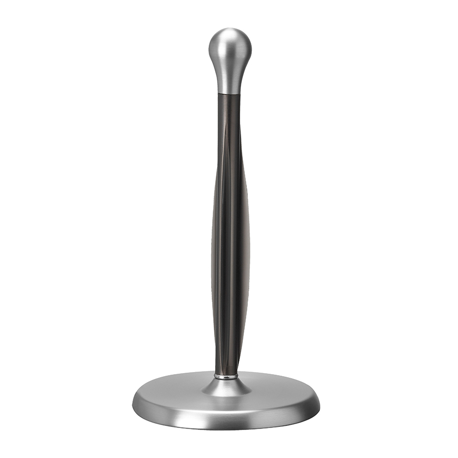 Изогнутый резиновый стержень отлично удерживает рулон бумажного полотенца, позволяя оторвать полотенце одной рукой. Металлическое основание обеспечивает устойчивость держателя во время использования, мягкое покрытие предотвращает скольжение и повреждение столешницы."
