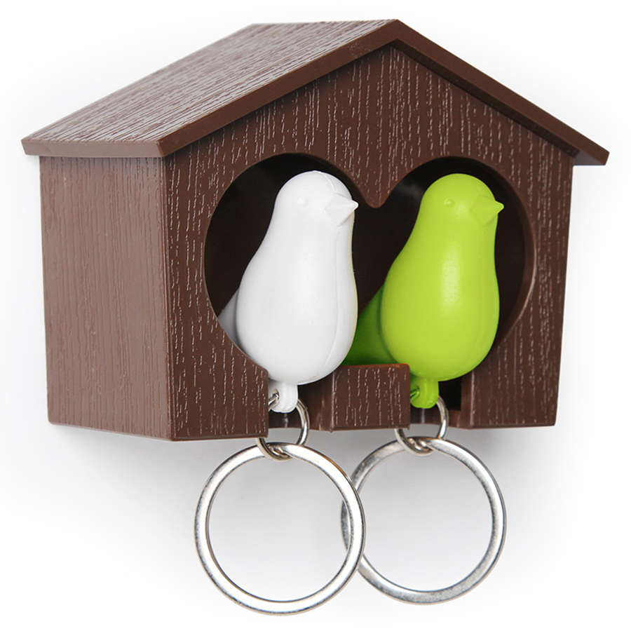 "Ключница в виде домика Sparrow – незаменимый предмет в быту, который поможет удобно расположить ключи у входной двери, чтобы не пришлось каждый раз тратить время на их поиск перед выходом из дома. Необычные брелки в виде птичек легко помещаются внутрь домика и быстро находятся в сумке или кармане. Аксессуары еще оснащены свистком, так что можно оригинально оповестить домашних о своем приходе с работы. Держатель крепится к стене на двусторонний скотч или шурупы.