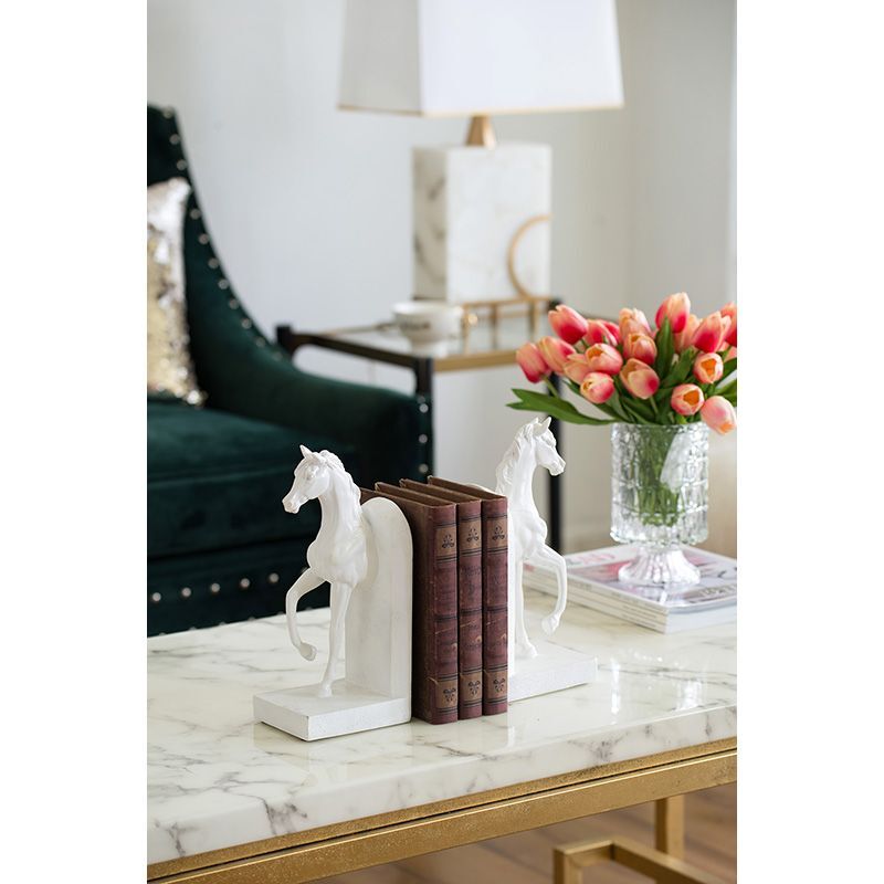 Наслаждайтесь элегантностью лошадей с этим набором из двух скульптурных подставок для книг. Массивные и прочные изделия позволят аккуратно организовать книжное пространство, при этом обеспечивая декоративную привлекательность на полке.