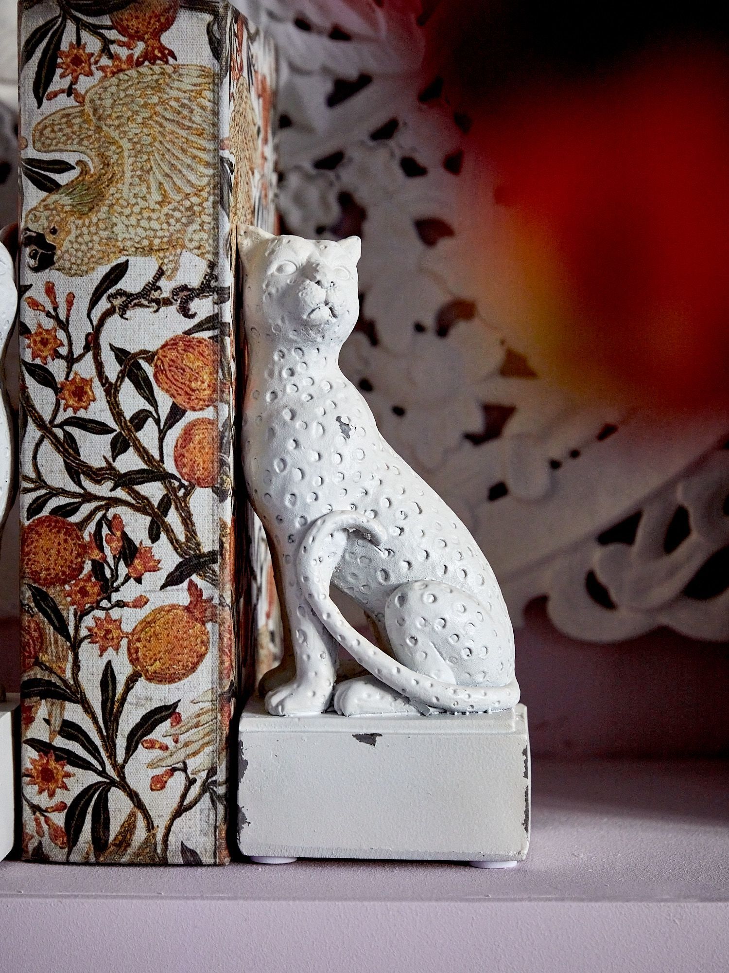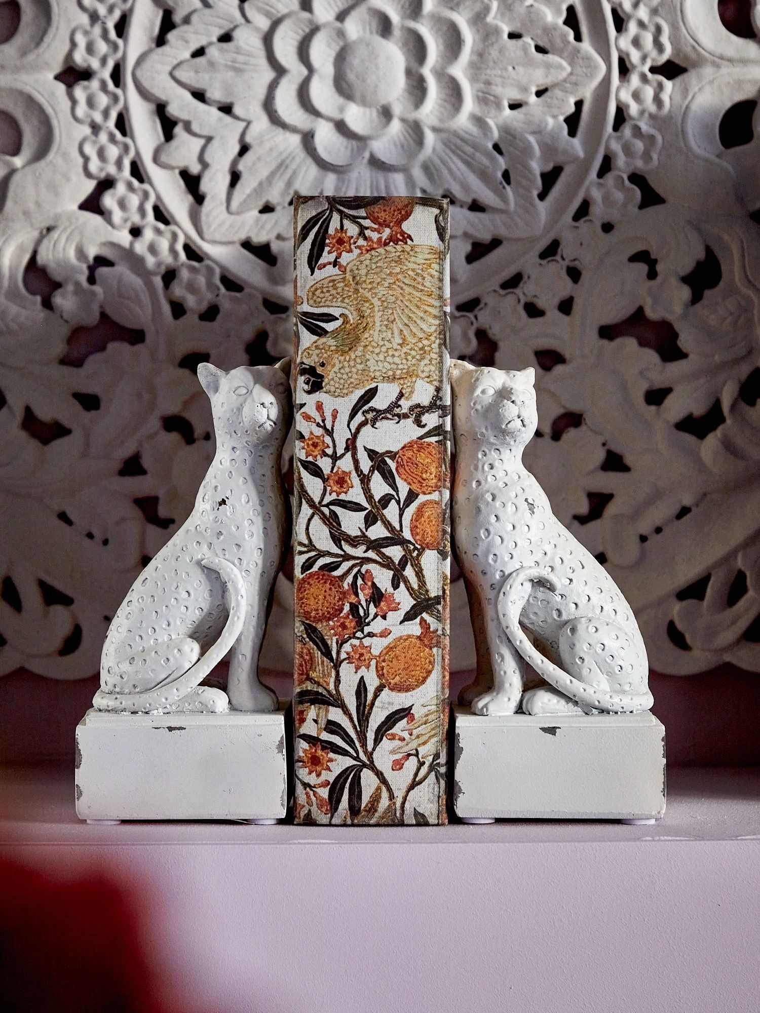 Держатели для книг в виде фигурок леопардов изящно украсят ваш интерьер, добавив акцент дикой природы в ваше пространство. Леопард является символом ловкости и могущества, мужества и решимости, хитрости и необузданной силы. Эти изделия предлагают особый способ содержать вашу домашнюю библиотеку в порядке, а античный белый цвет, с легким износом и потрескавшейся текстурой, усиливает иллюзию вневременного шарма.