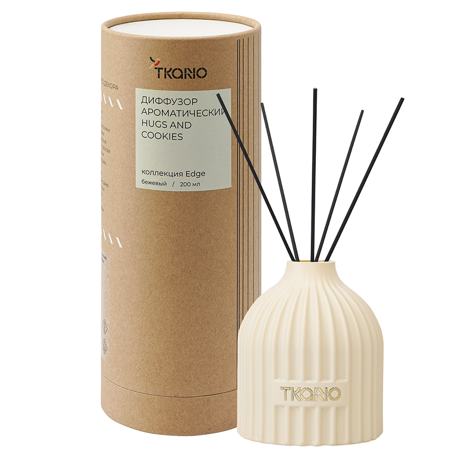 "Диффузор ароматический Hugs and Cookies бежевого цвета из коллекции Edge с дизайном, вдохновленным русскими традициями, отлично подойдет для домашнего декора и создания в интерьере уютной, расслабляющей атмосферы. Фактурные грани и округлая поверхность стеклянного флакона отсылают нас к образу купола – символу духовного подъема и стремления к совершенству. В комплект входят 10 фибровых палочек.