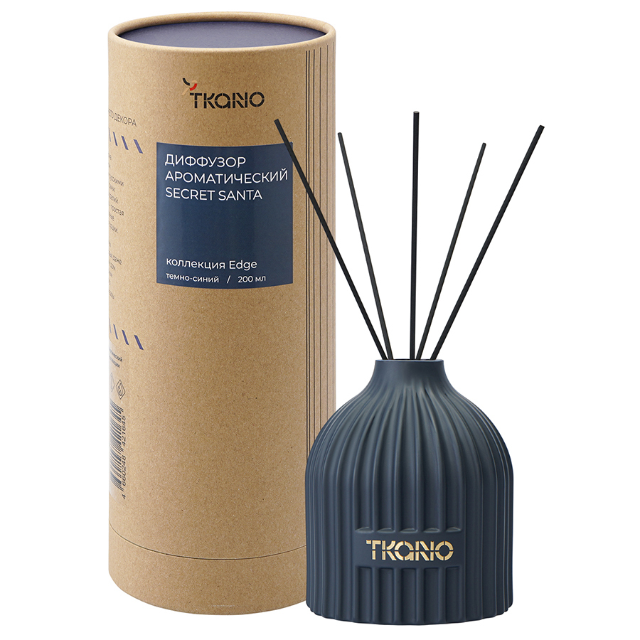 "Диффузор ароматический Secret Santa темно-синего цвета из коллекции Edge с дизайном, вдохновленным русскими традициями, отлично подойдет для домашнего декора и создания в интерьере уютной, расслабляющей атмосферы. Фактурные грани и округлая поверхность стеклянного флакона отсылают нас к образу купола – символу духовного подъема и стремления к совершенству. В комплект входят 10 фибровых палочек.