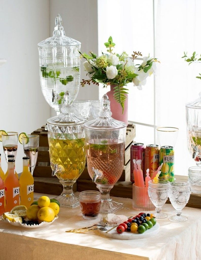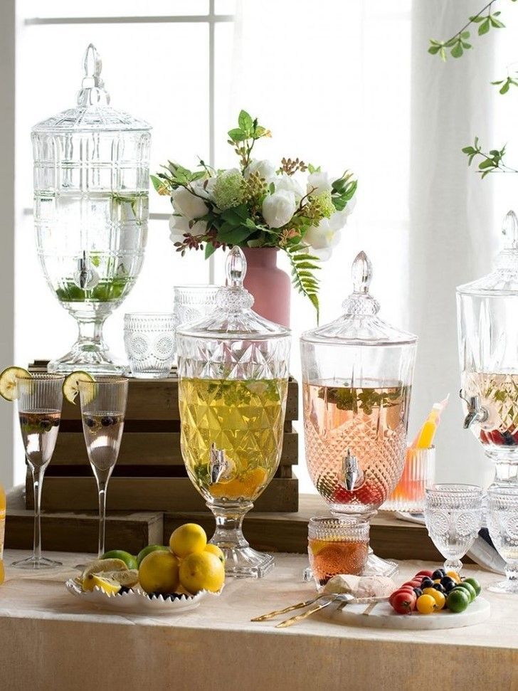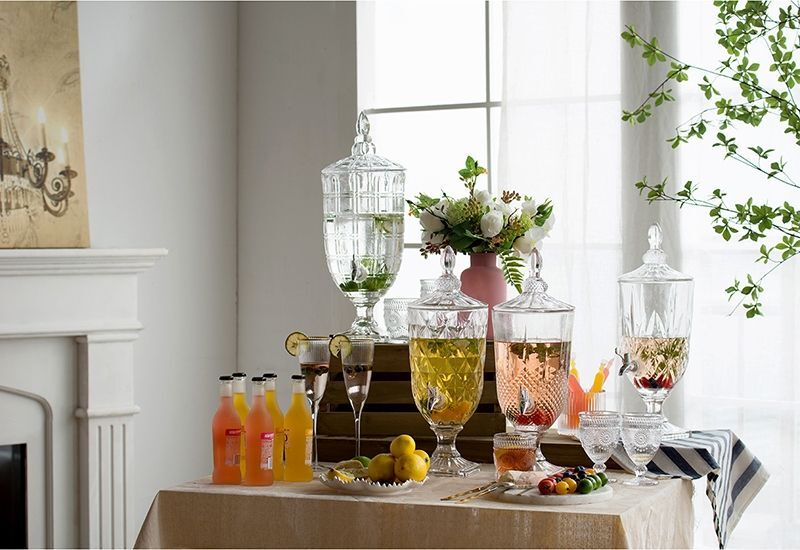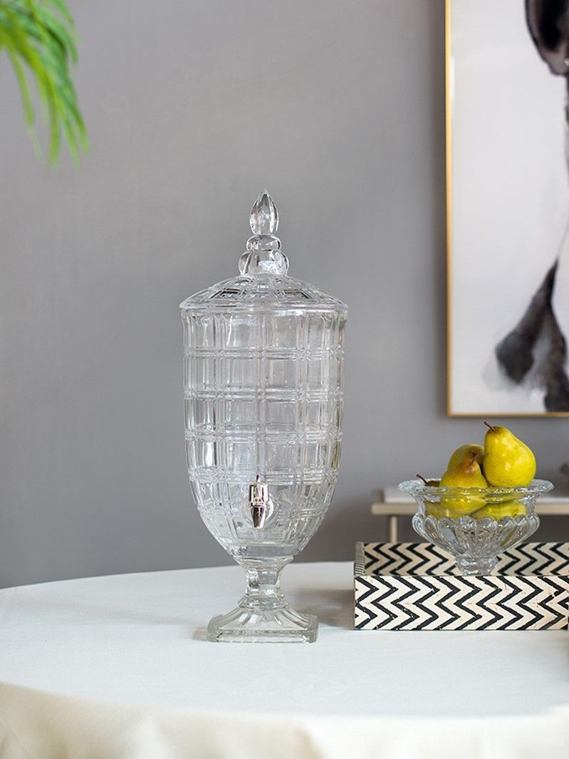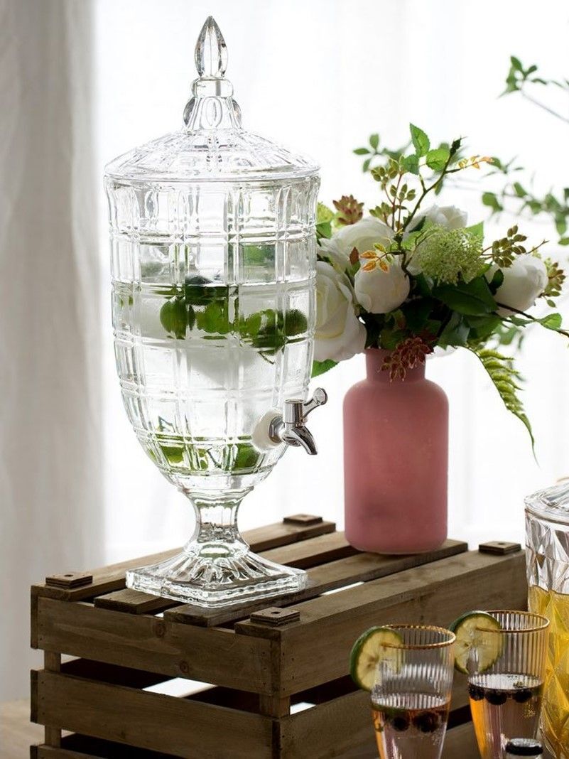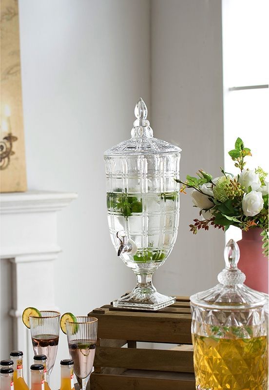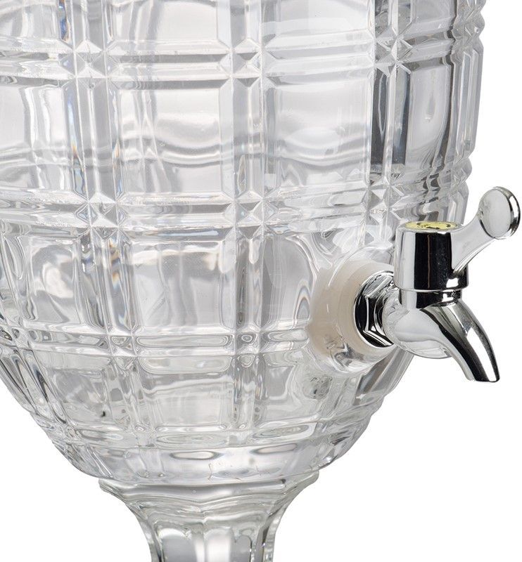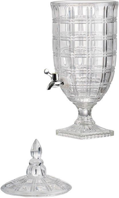 Изысканный стеклянный диспенсер для напитков идеально подходит для проведения вечеринки. Имеет классическую форму пьедестала и поставляется с крышкой.