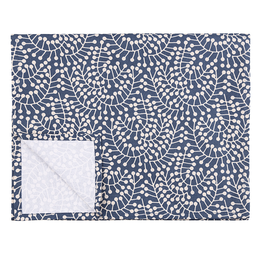 "Дорожка на стол темно-синего цвета с принтом Спелая Смородина из коллекции Scandinavian touch внесет разнообразие в повседневную и неформальную праздничную сервировку. Изделие с авторским дизайном, разработанным одним из ведущих финских агентств, органично впишется в любой современный интерьер. Дорожка выполнена из плотного хлопка - прочного материала, который хорошо впитывает влагу и не деформируется после множества стирок.