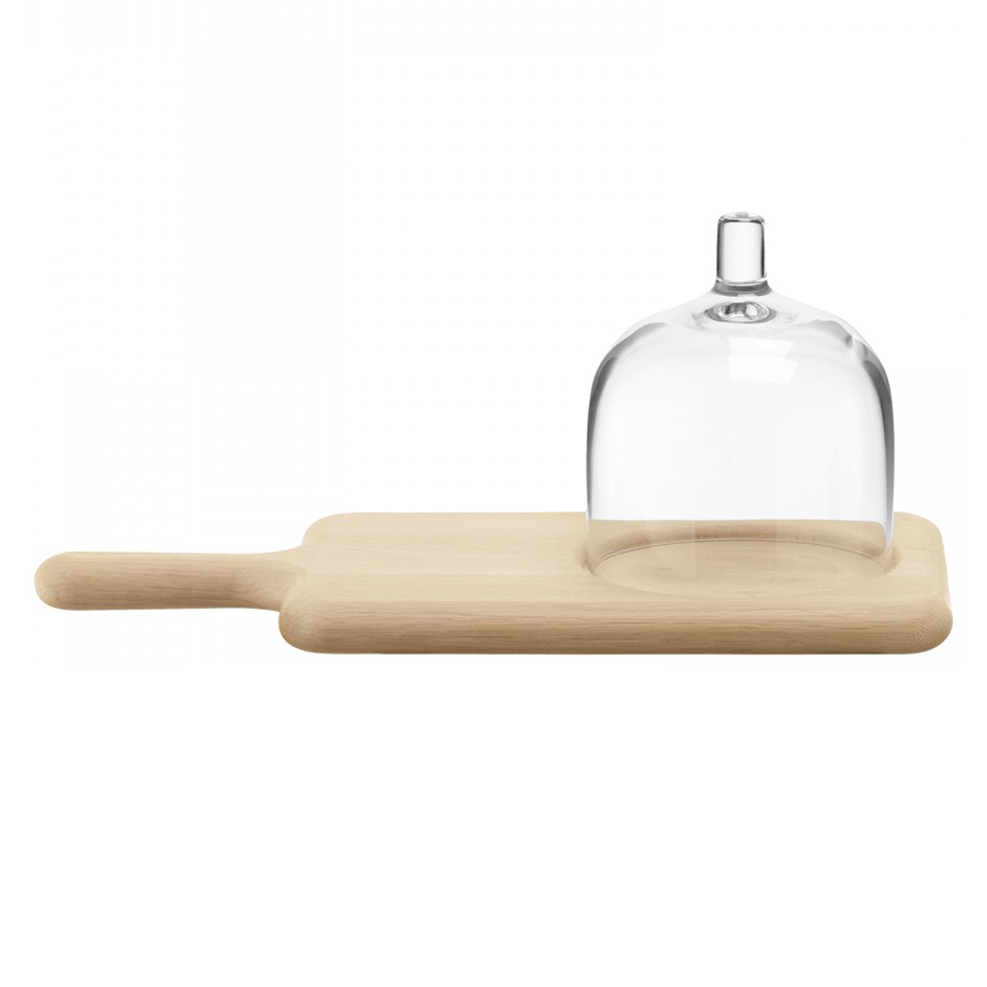 "Набор из доски с крышкой подойдет для сервировки сыров, крекеров и других легких закусок для уютного семейного обеда, домашней вечеринки или романтических свиданий. Крышка из выдувного стекла закрывает часть доски ручной работы, выполненной из натурального дуба. Набор упакован в красивую коробку и его можно захватить с собой на домашнюю вечеринку для хозяина(,-ки), или подарить на особую дату друзьям.