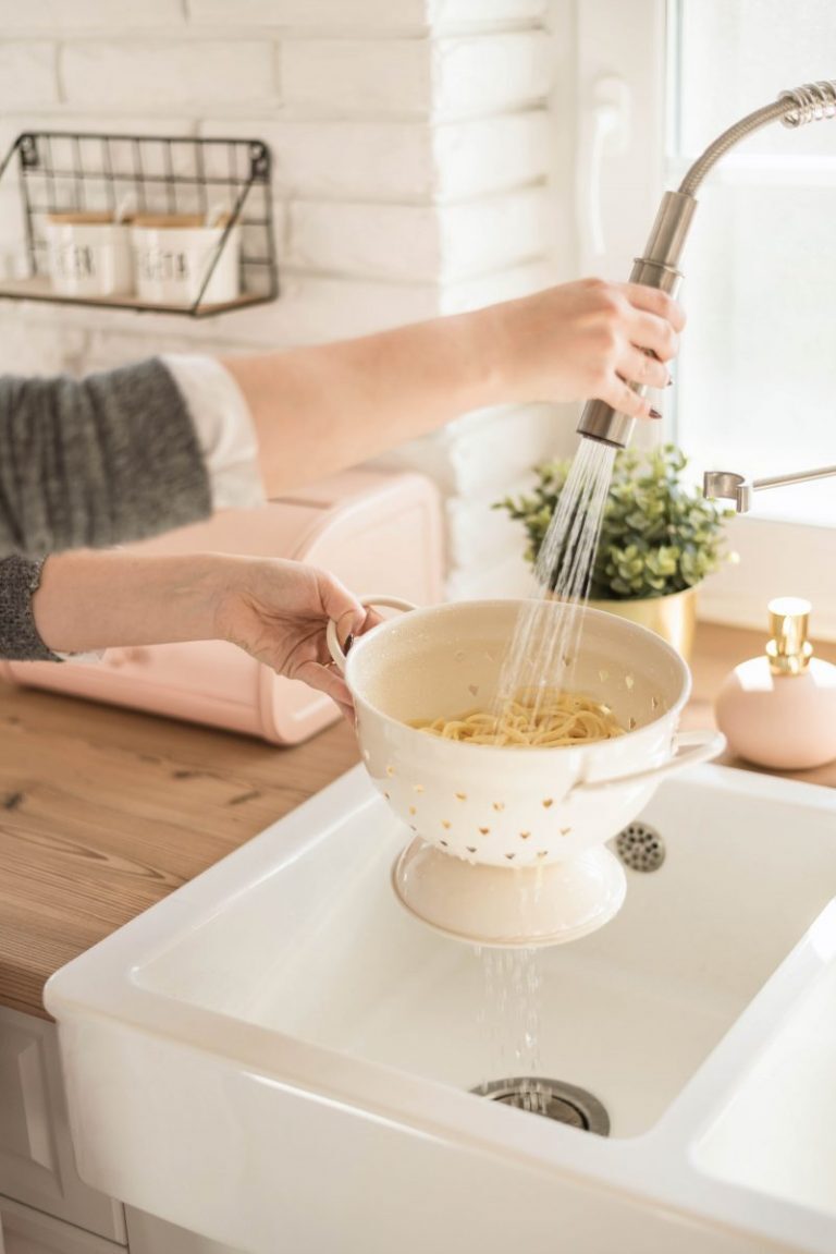 C эмалированным дуршлагом особенно удобно промывать овощи, салаты, макароны. Дуршлаг имеет ручки и подставку, что также делает его идеальным для сервировки стола.