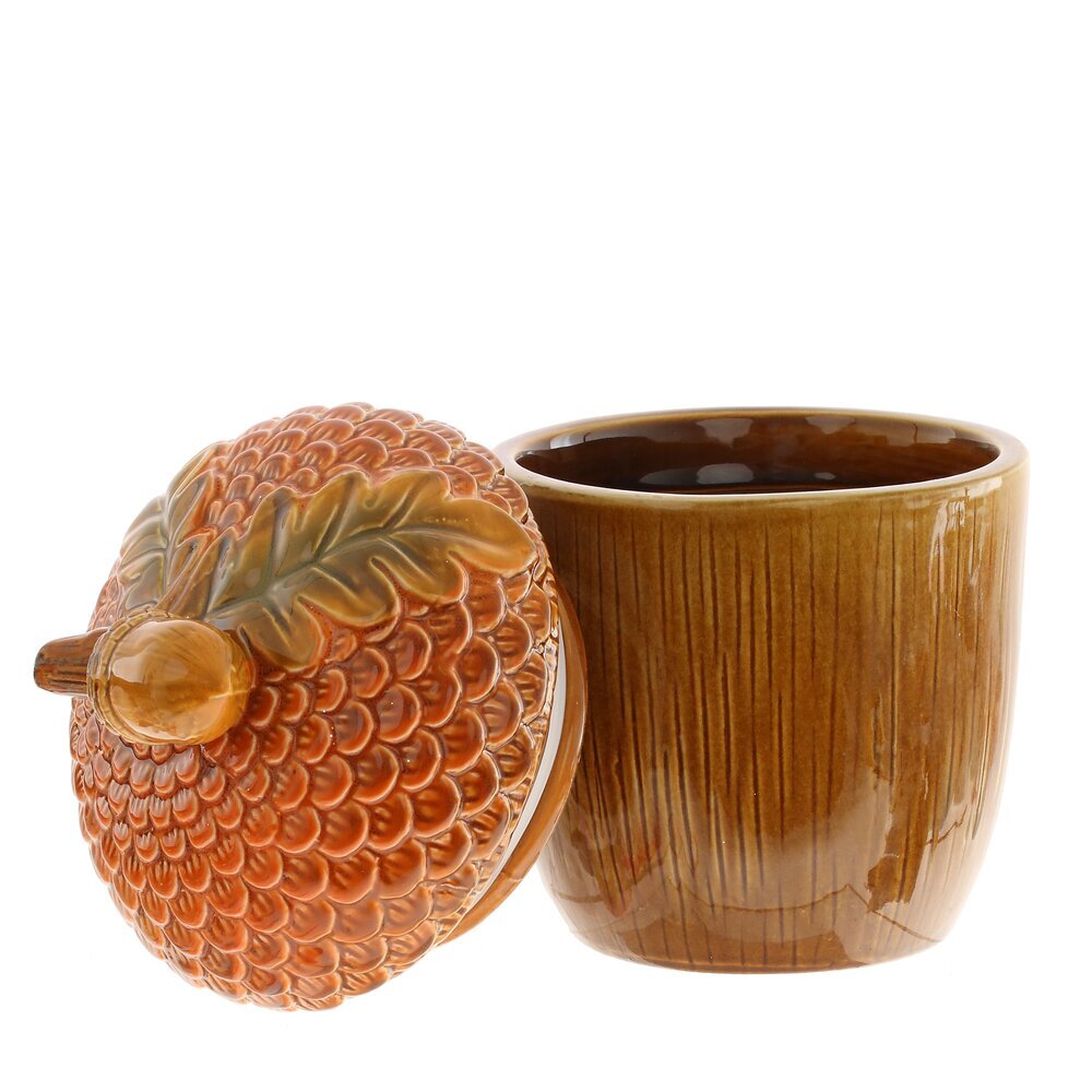 Емкость для сыпучих продуктов "Жёлудь", объемом 1000 мл, выполнена в форме желудя. Шляпка желудя служит крышкой и имеет силиконовую прокладку для сохранения свежести продуктов. Удобная, практичная и оригинальная банка отлично впишется в интерьер и добавит лесного очарования. Представлена в двух вариантах - светло-коричневом и коричневом оттенках.
