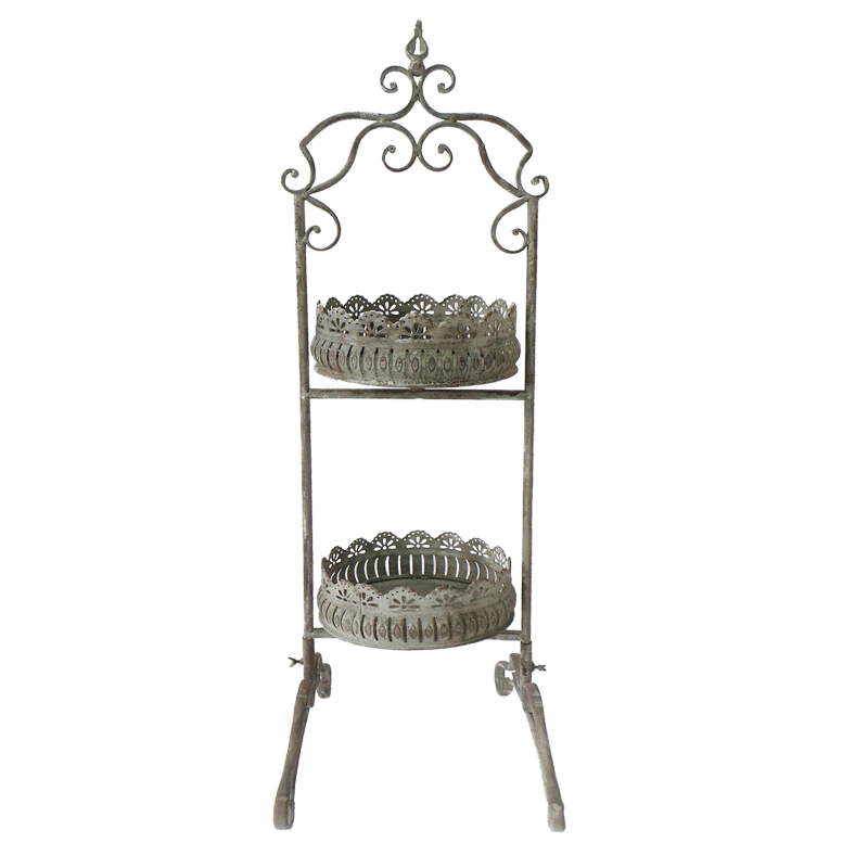 Этажерка металлическая 2-х ярусная для цветов декоративная, "белая патина"