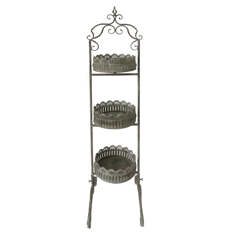Этажерка металлическая 3-х ярусная для цветов "белая патина"