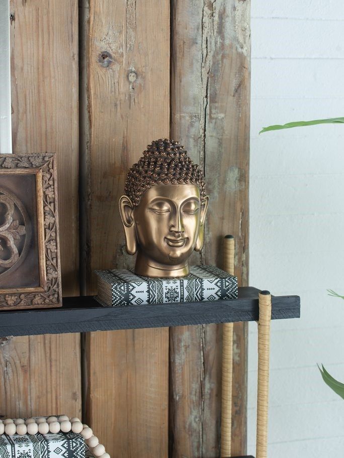 Вдохновляйтесь в любом месте вашего дома с этой безмятежной скульптурой головы Будды. Золотистая расцветка и богатая текстура украсит любой интерьер, привлекая внимание к своей необычной форме.