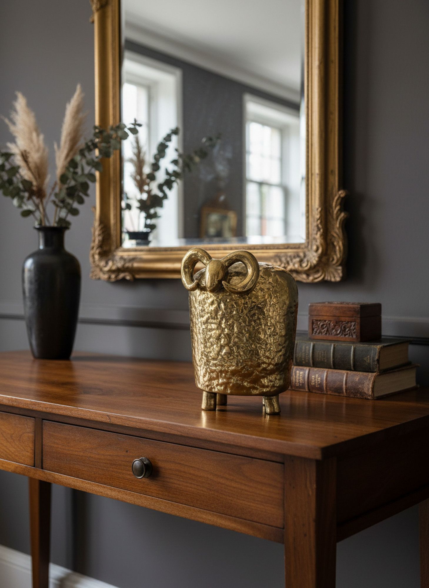 Декоративная фигурка в виде золотистой овечки сочетает в себе природное очарование и винтажный дизайн. Овечка символизирует невинность и чистоту, целеустремленность и трудолюбие, воспитание и заботу, привлечет в ваш дом любовь и семейное благополучие. Изделие идеально подойдет для любой поверхности стола, каминной или книжной полки, добавляя оригинальности в любое пространство вашего дома.