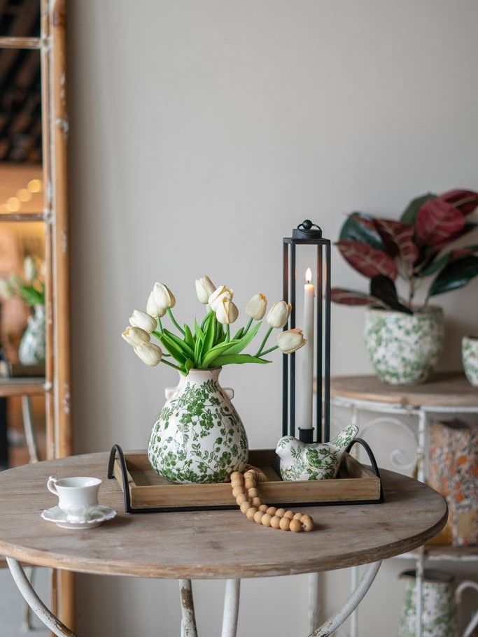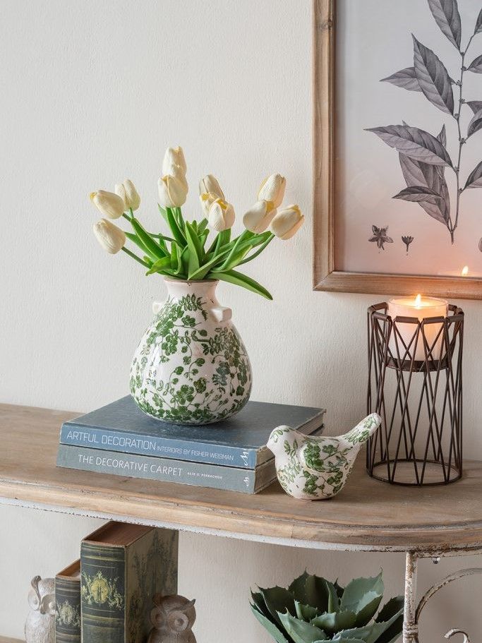 По легенде птички приносят радость и счастье в дом, эта фигурка в виде очаровательной пташки, с нежно-зеленым цветочным мотивом на белоснежной поверхности, без сомнений является символом благополучия. Разместите изделие на вашем журнальном столике, каминной полке или создайте свой дизайн интерьера совместно с изделиями из этой коллекции.