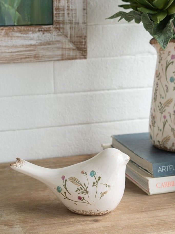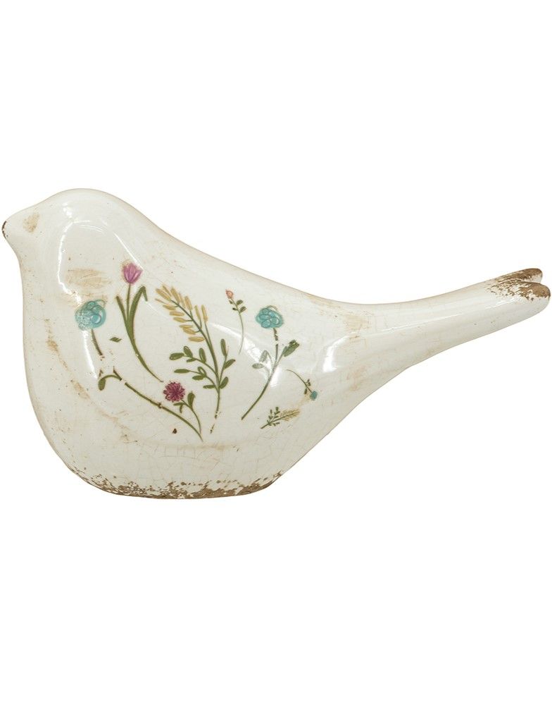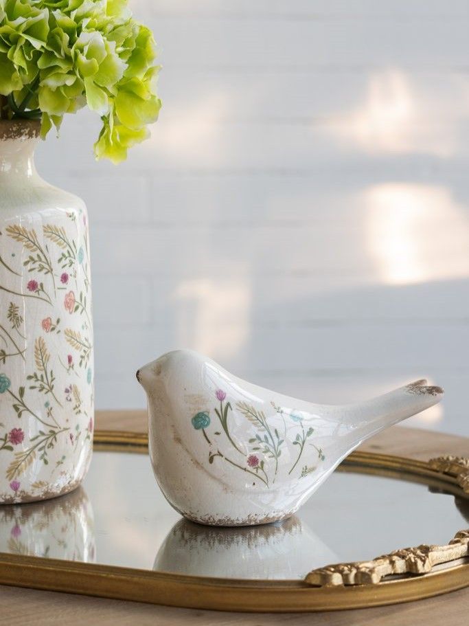 Керамическая фигурка птички, сочетающая в себе нежную красоту природы и очарование винтажного искусства, отличается лаконичным минималистичным дизайном, потертым белым оттенком и разноцветными цветочными мотивами. Благодаря идеальному размеру, изделие красиво разместится на любой поверхности стола, каминной полки или стеллажа. Потертости и мягкие цвета позволяют этому изделию сочетаться с интерьерами в стиле кантри, рустик, шебби-шик и эклектика, органично вписываясь в любую обстановку.