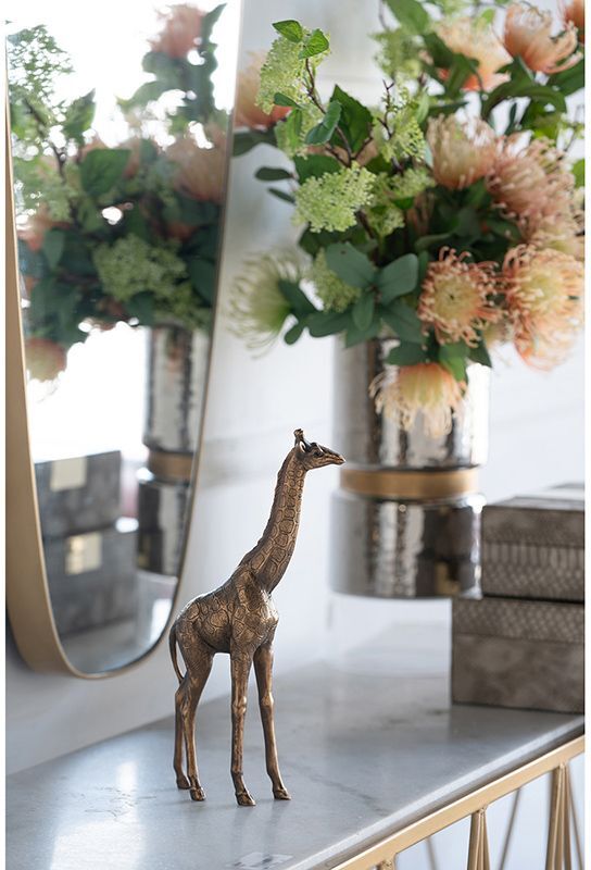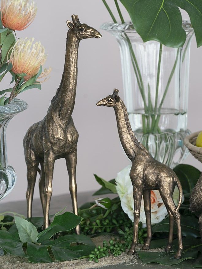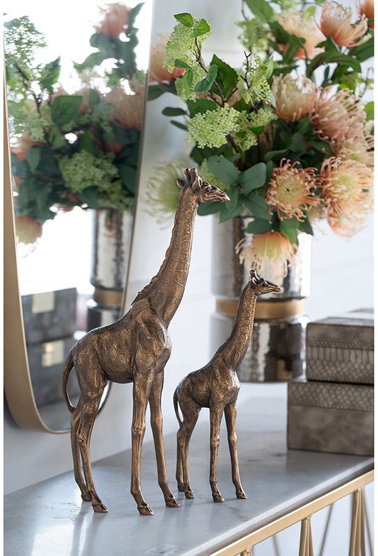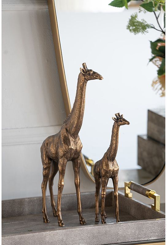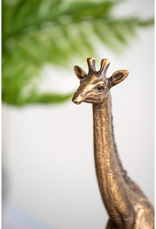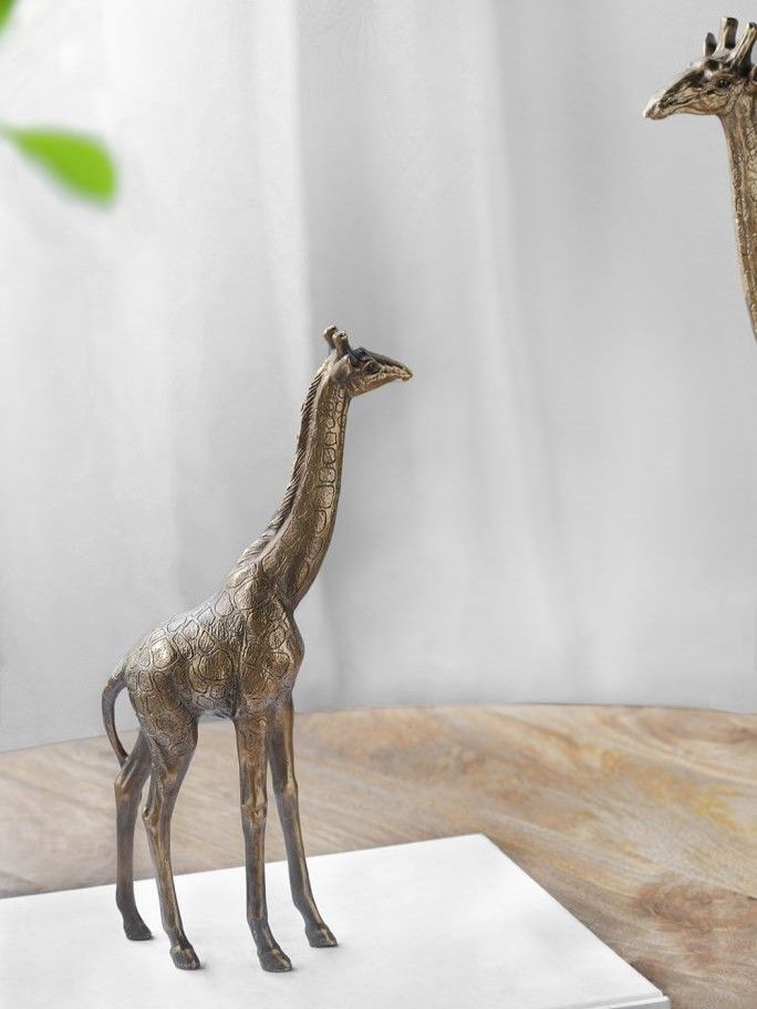 Жираф является символом почетности, величия, красоты и грации. Фигурка в виде жирафа создаст неожиданный и экзотичный акцент в любом пространстве. Его современная эстетика подчеркнута медной отделкой, что идеально подходит для демонстрации изделия на консоли, приставном столике или полке, прекрасно сочетаясь с любыми предметами в интерьере.