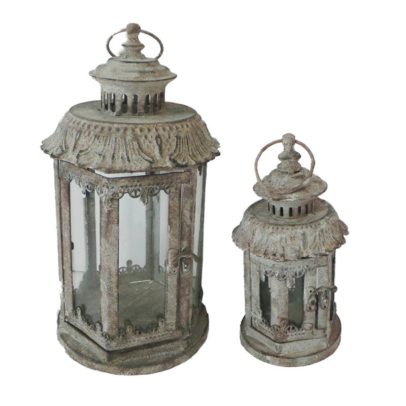 Фонари садовые, пара, под свечу, "белая патина"