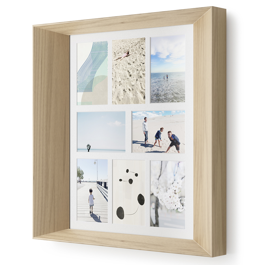 Фоторамка вмещает 8 фото по 10 х 15 см, а если вытащить специальную вставку - одно большое фото 35 х 46 см. Поставляется со всем необходимым монтажным оборудованием."