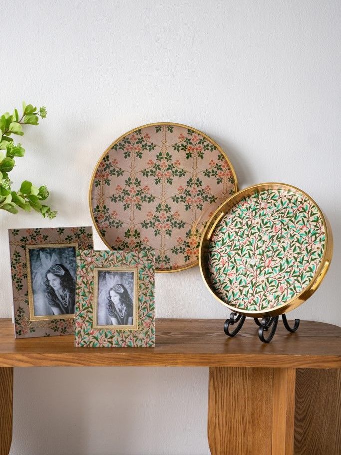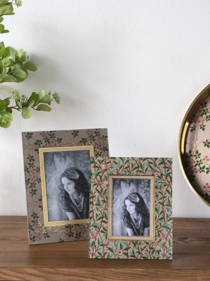 Изысканная фоторамка, вдохновленная винтажными произведениями искусства, имеет классический прямоугольный силуэт и украшена флористическим орнаментом в зеленых, бежевых и золотистых тонах. Фоторамка идеально подходит для любой поверхности стола, прикроватной тумбы или каминной полки, надолго сохраняя ваши дорогие воспоминания. Сочетание тонов позволяет изделию дополнять интерьеры в стиле французского кантри, традиционном и шебби-шик, органично вписываясь в любой интерьер.