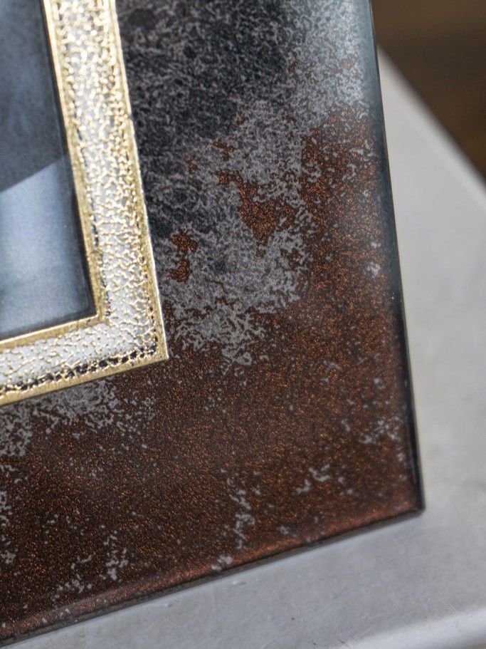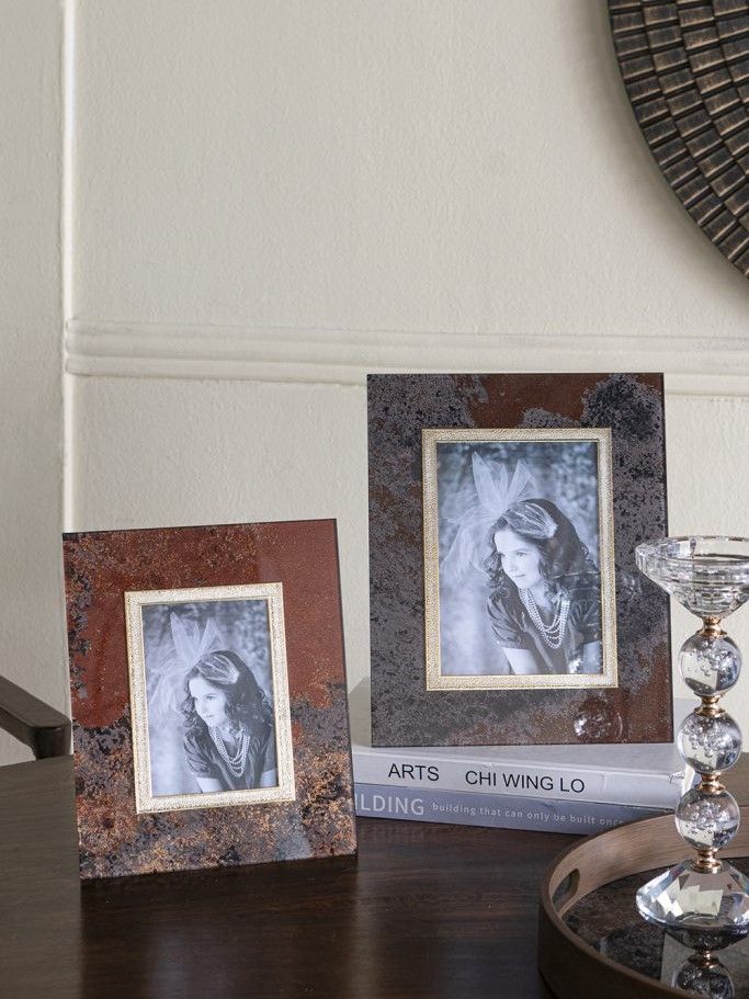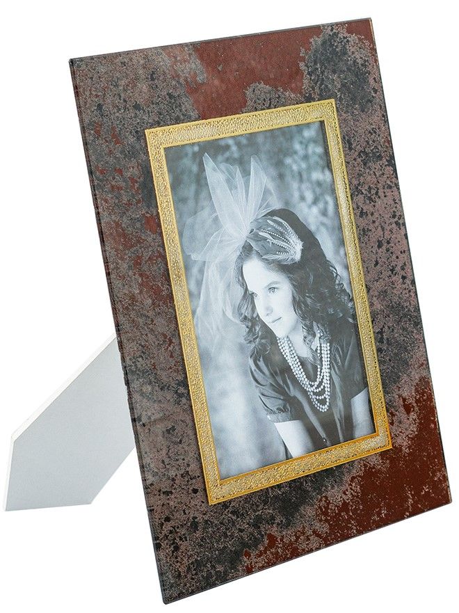 Красивая фоторамка, сочетающая в себе современный стиль и элементы абстрактного искусства, обладает прямоугольным силуэтом и текстурой под мрамор с насыщенными оттенками черного, медного и коричневого. Изделие можно поставить на прикроватную тумбу, каминную полку или стол, как напоминание о самых дорогих моментах. Абстрактные детали и насыщенные тона позволяют этой рамке для фотографий дополнять переходный, современный, эклектичный и индустриальный стили, благодаря чему изделие органично впишется в любой интерьер.