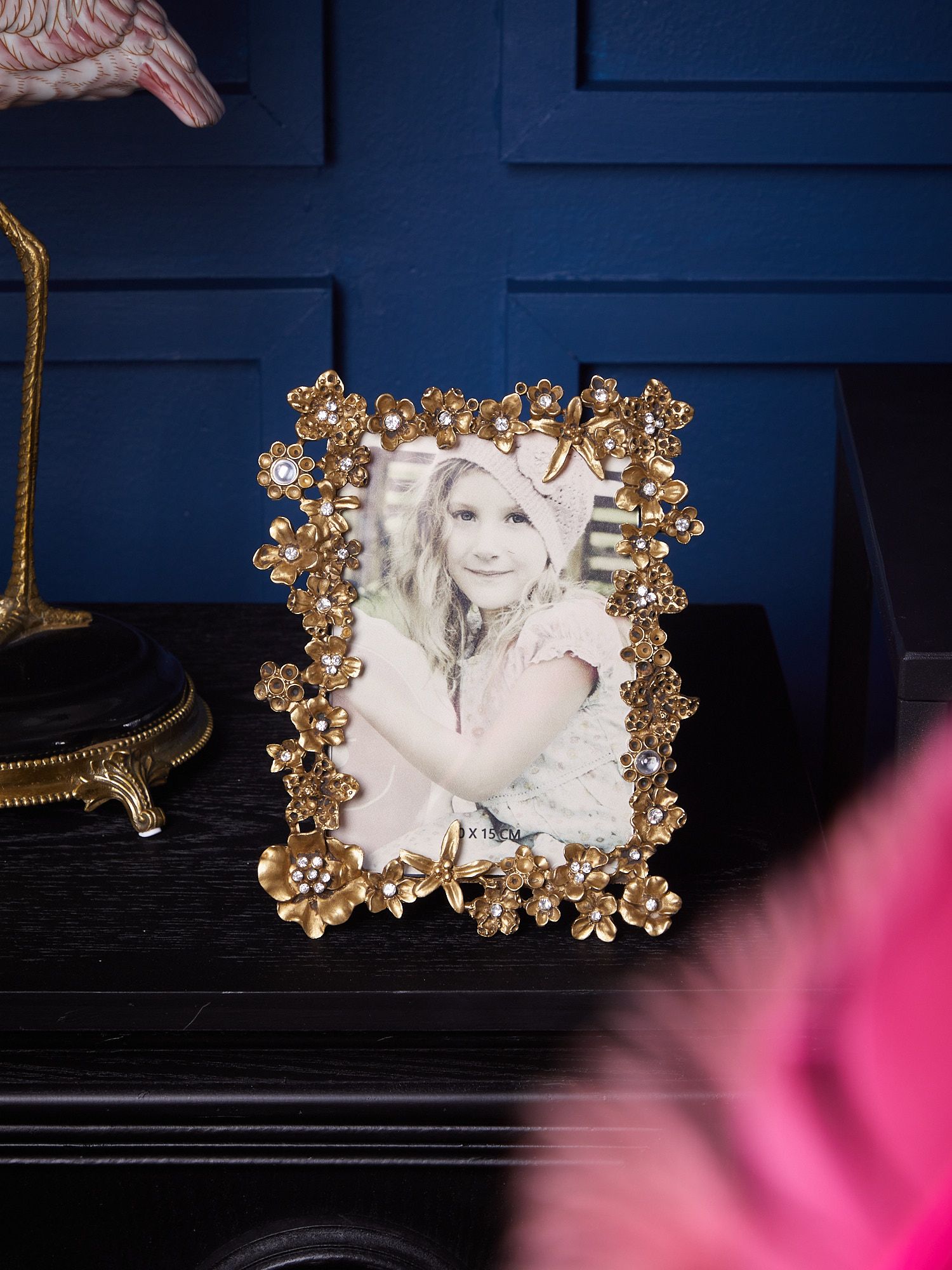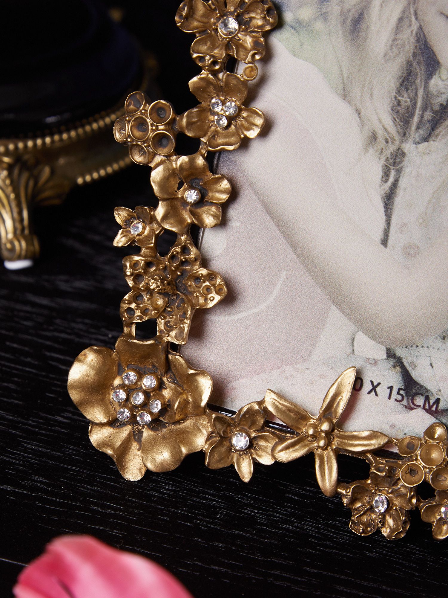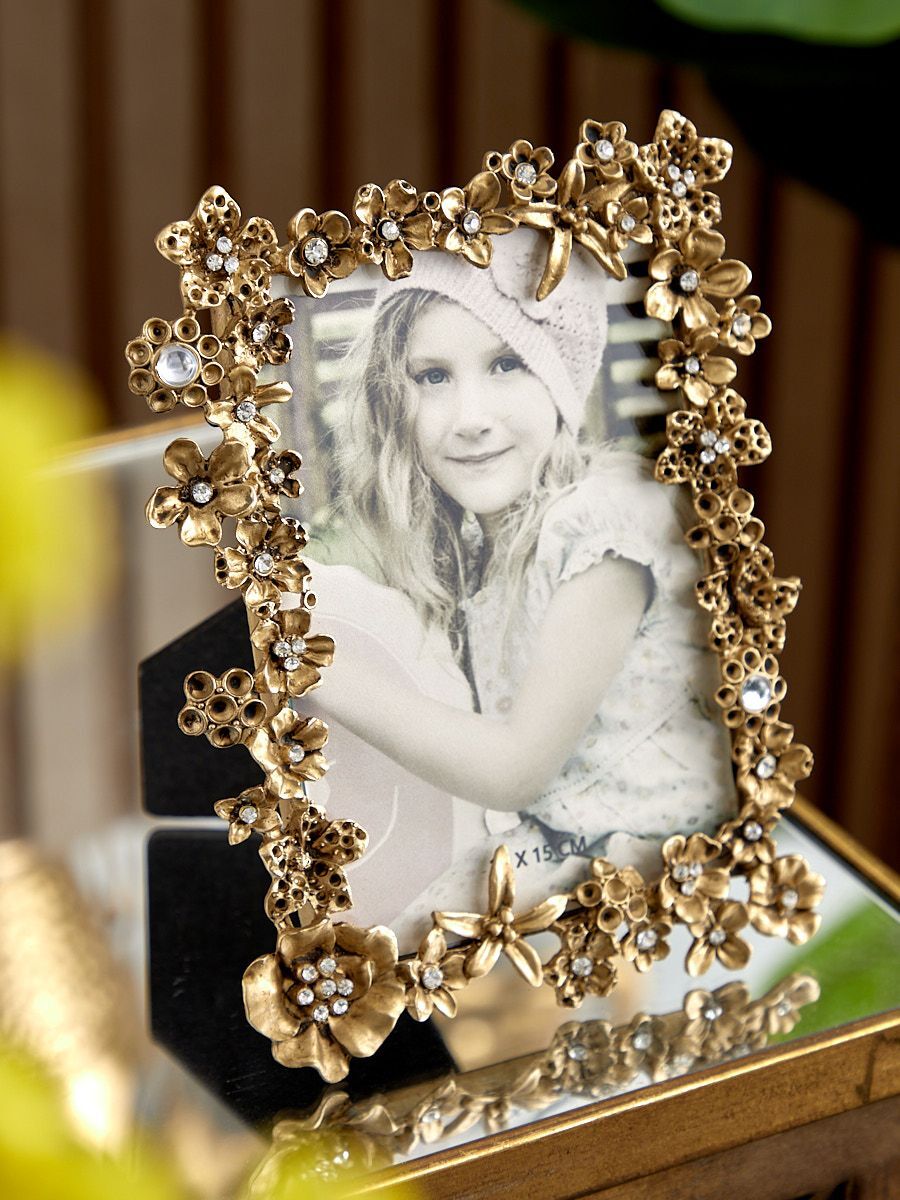 Роскошная настольная фоторамка, выполненная из металла и украшенная распустившимися цветами, станет отличным вариантом для оформления ваших фотографий. Изделие сохранит воспоминания о самых ярких моментах вашей жизни, а изящная форма и резные элементы сделают ее прекрасным декором.