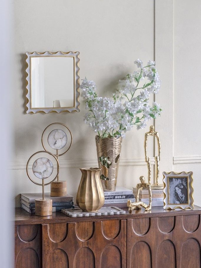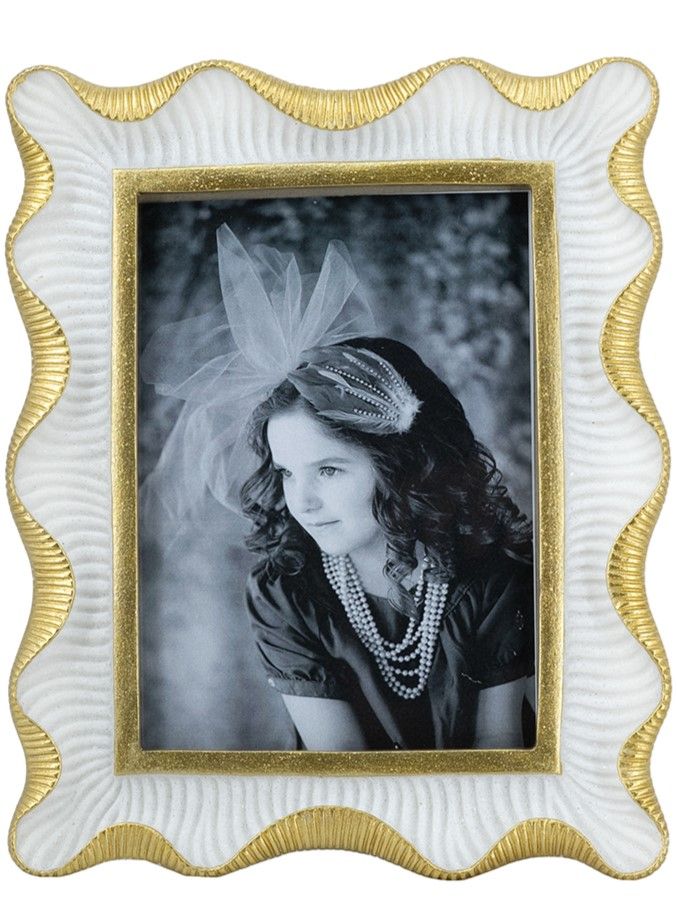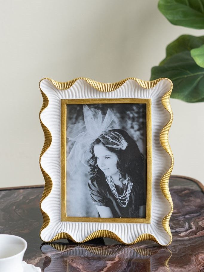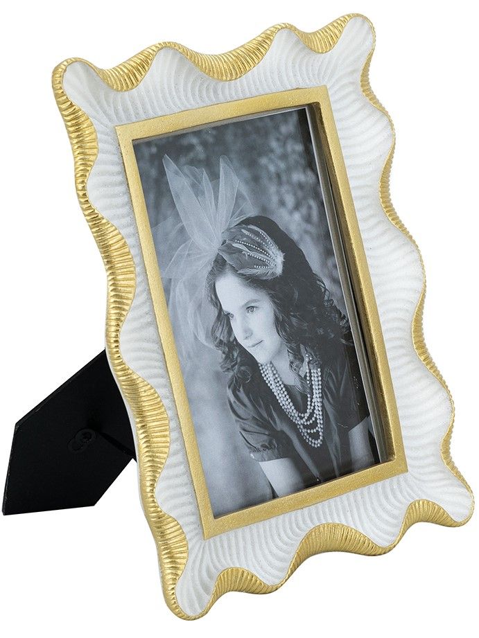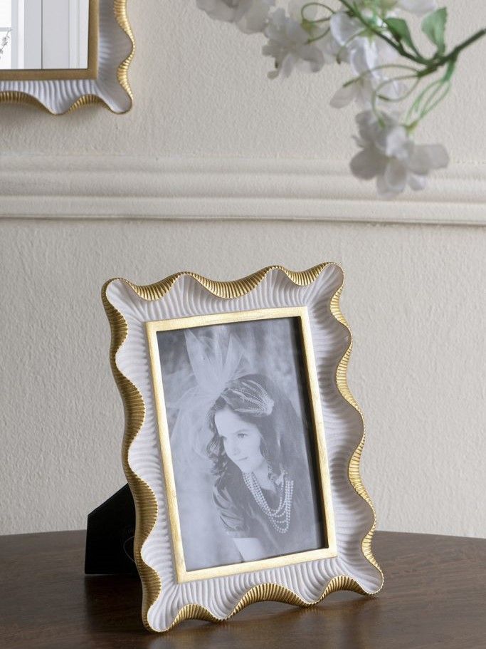 Изысканная фоторамка с волнистым силуэтом вдохновлена завораживающей красотой эпохой прошлых веков. Рамку можно поставить на стол, а также повесить на стену в вертикальном или горизонтальном положении. Выполненная в сочетании белого и насыщенно золотистого цветов, она украсит любое пространство и обеспечит надежную защиту ваших самых дорогих сердцу воспоминаний. Двухцветная расцветка и художественные детали позволяют этой рамке дополнять современный, традиционный и эклектичный стили, благодаря чему она органично вписывается в любой интерьер.