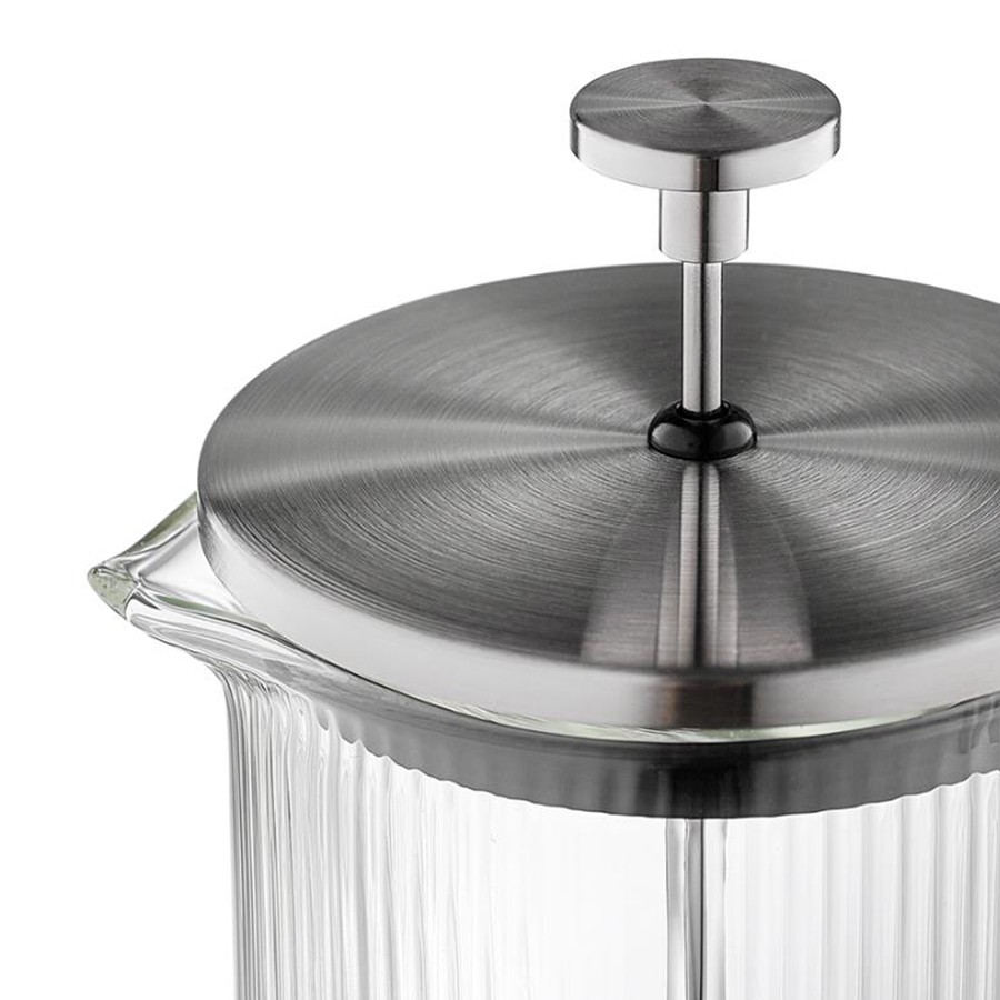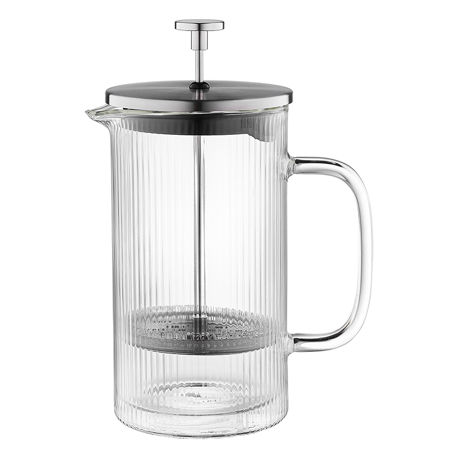 "Френч-пресс Soft Ripples объемом 1 л поможет быстро заварить вкусный и ароматный чай или кофе. Лаконичная форма и легкое рифление поверхности делают его украшением любой кухни и обеденного стола.