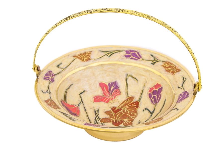 Фруктовница-корзинка Цветы,латунь с эмалью