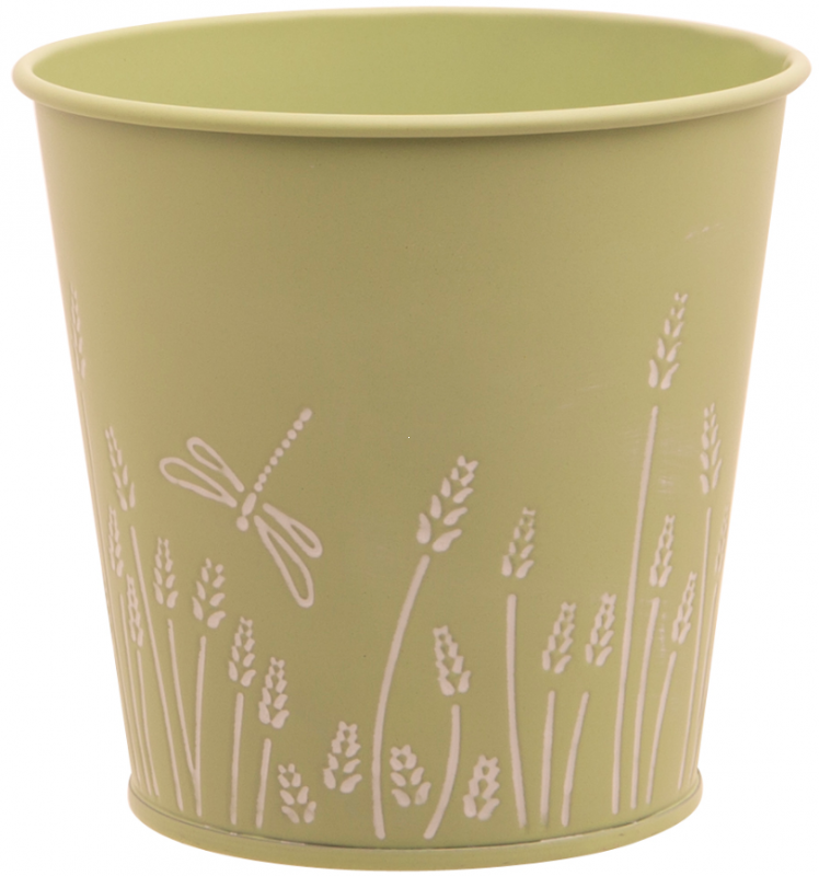 Горшок для растений 11X8,2XH10,6CM, металл, цвет зеленый с белым декором
