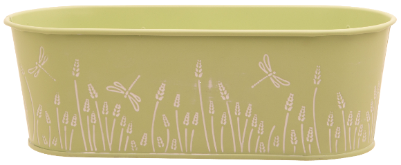 Горшок для растений овальный 27,5X11,5XH9,4CM, металл, цвет зеленый с белым декором