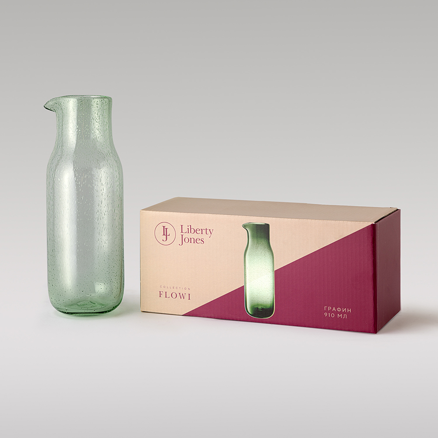 "Графин Flowi идеально подходит для подачи холодных напитков. Он выполнен из выдувного стекла, словно наполненного множеством пузырьков воздуха, создающих завораживающий эффект движения и жизни. , ,Этот предмет сервировки сделает любое пространство более уютным и утонченным, великолепно впишется в интерьер в стиле прованс, кантри, шебби-шик, эклектика и другие.